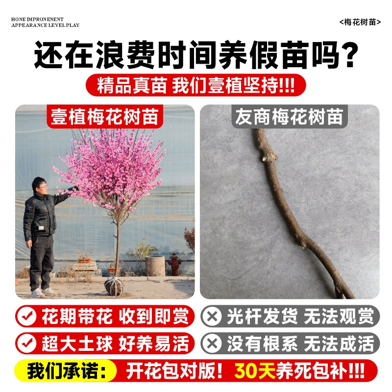 📚 梅花树苗庭院地栽原生红绿梅花腊梅室外风景树耐寒植物花卉骨里红