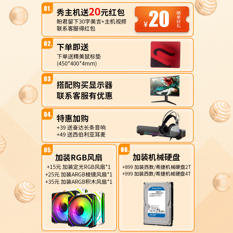 39¥ CZ028 7WzEUMWGoY0¥ https://m.tb.cn/h.7xNOl6y 影驰游戏主机15代 U7 265KF/RTX5070/5070Ti/RTX5080/RTX5090/32G内存黑神话悟空吃鸡永劫游戏DIY套餐 --------------------- 【原售价】14,599元 【现售价】12,599元。