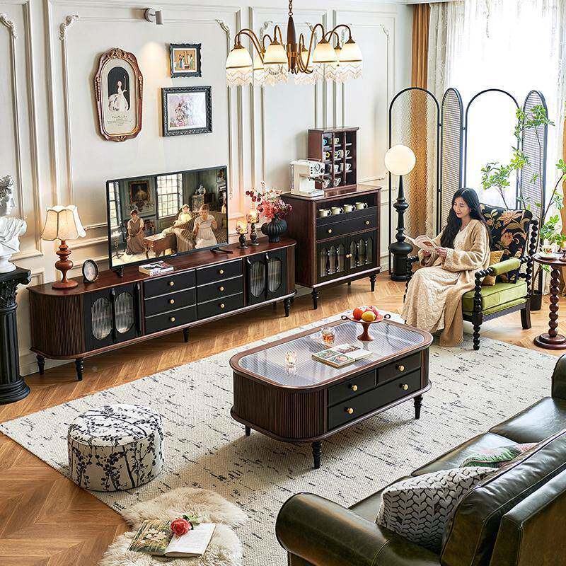 📚 色一具一家黑中风茶古水柜物法式复古实木矮餐边ARZ柜客厅靠墙储