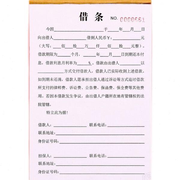 📚 个人正规借条单二联通用欠款条借钱凭证担保借款单协议书借据定制