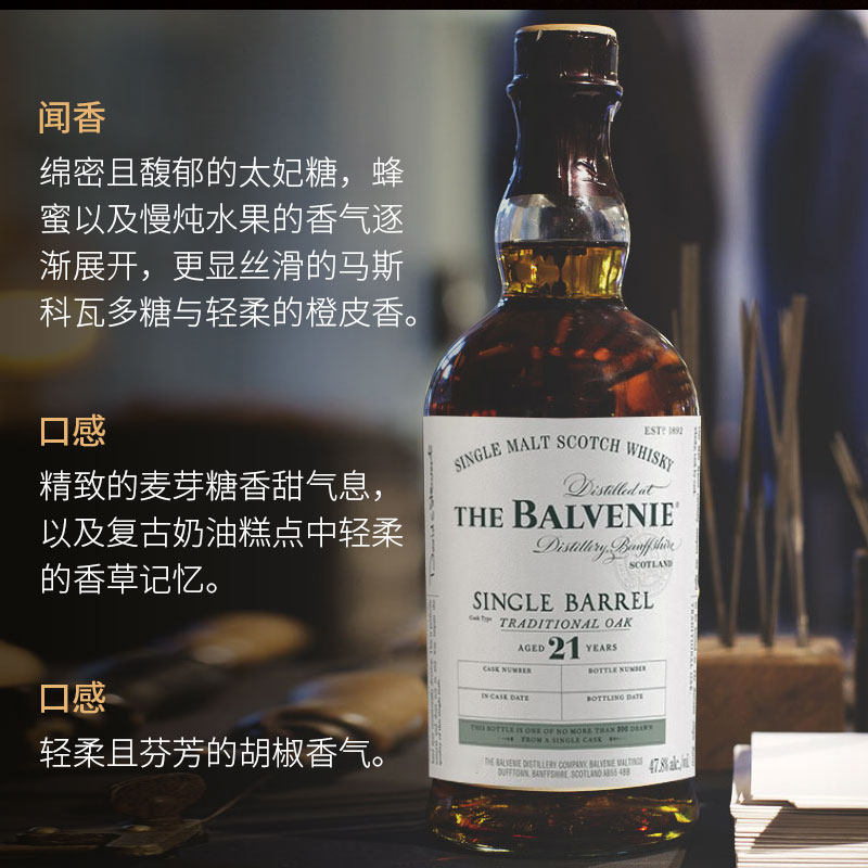 📚 The Balvenie百富21年单桶单一麦芽苏格兰威士忌700ml*1瓶