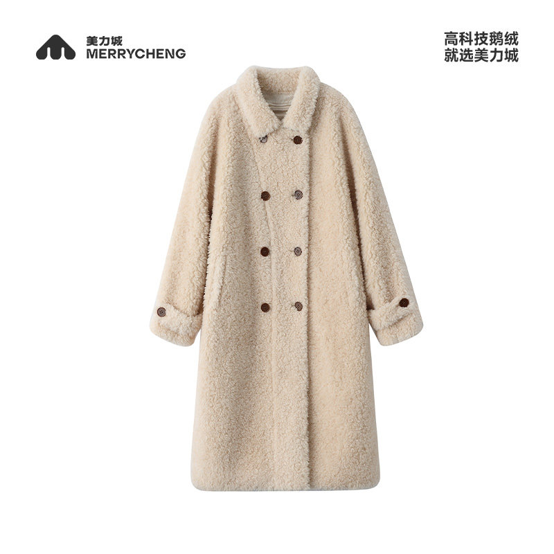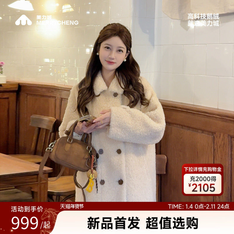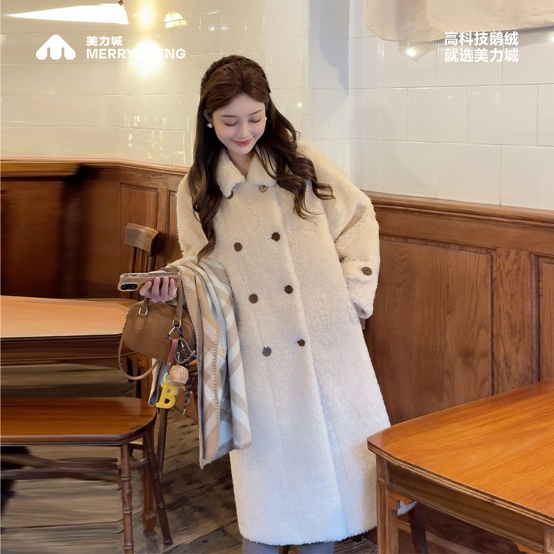 📚 美力城羊羔毛翻领大衣鹅绒内胆高端中长款加厚保暖羽绒冬季外套女