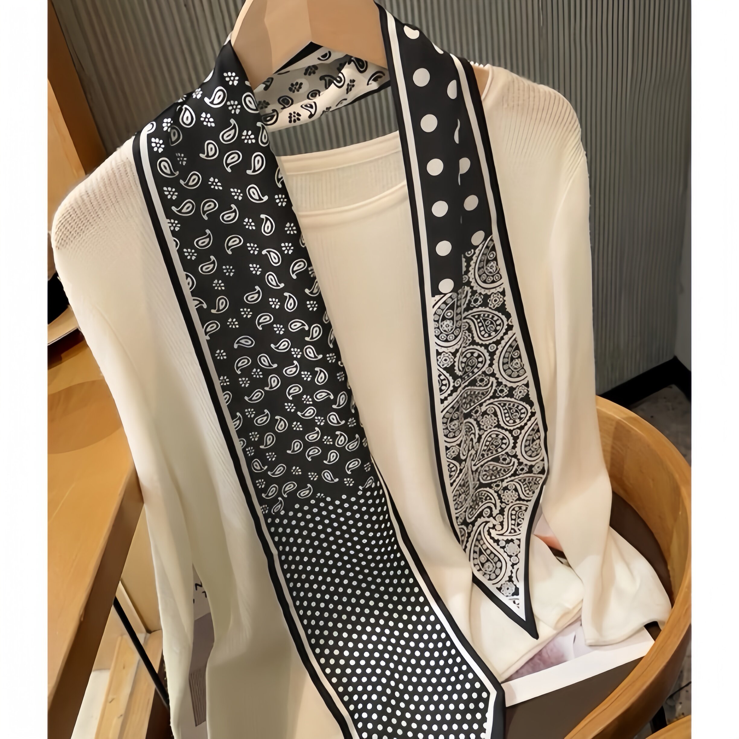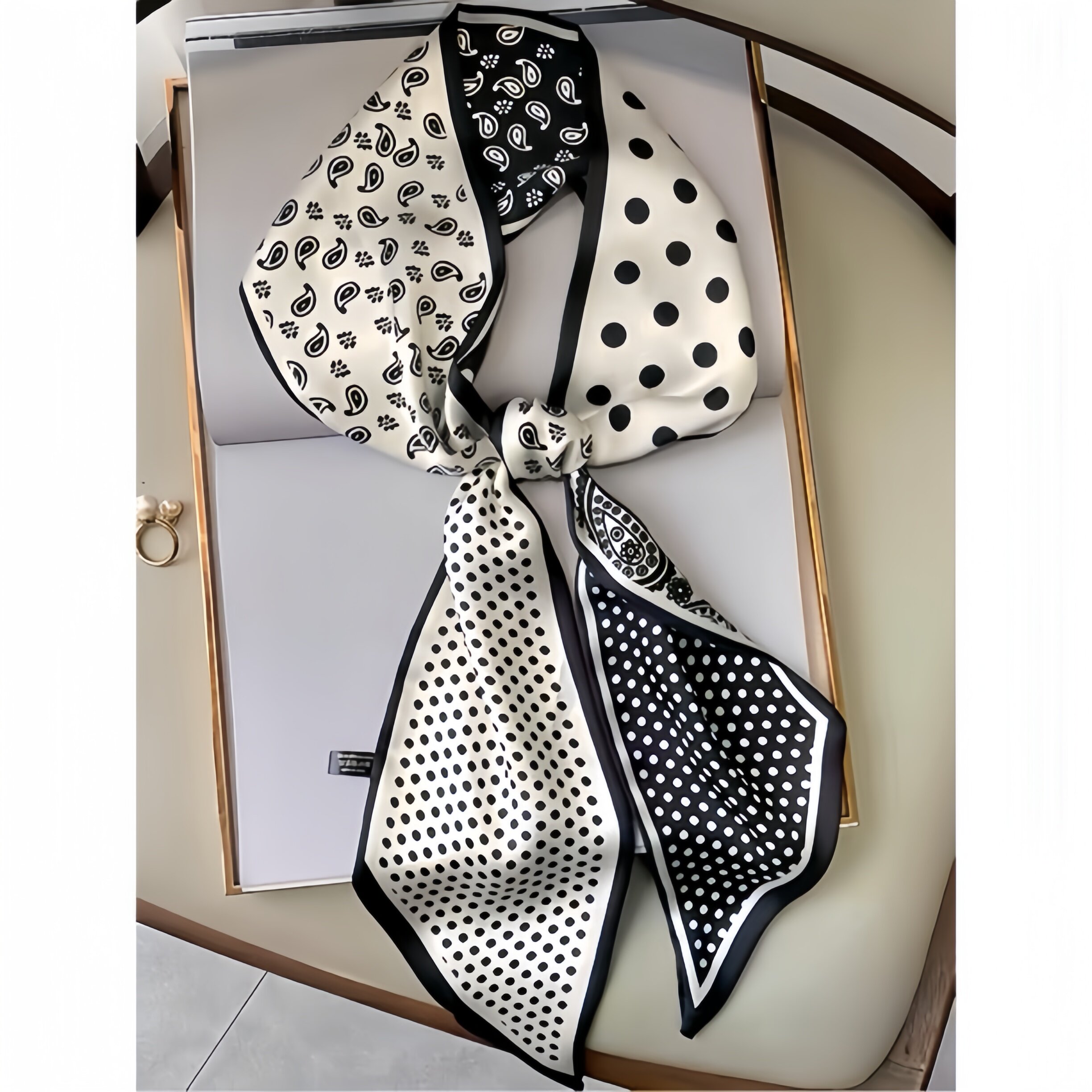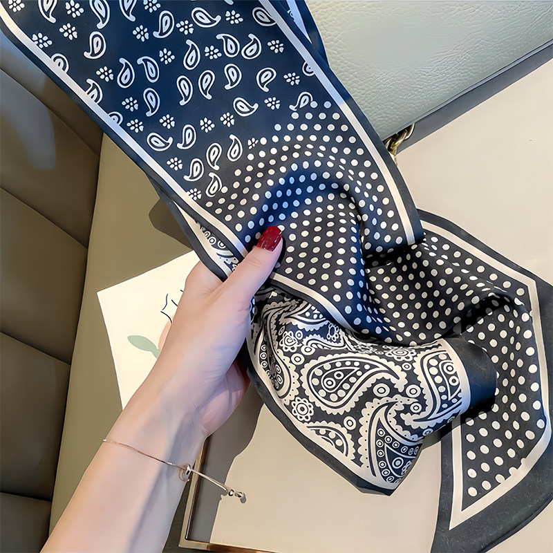 📚 腰果波点长条丝巾女腰带2026新款高级感搭西装衬衫系脖小领巾绑包