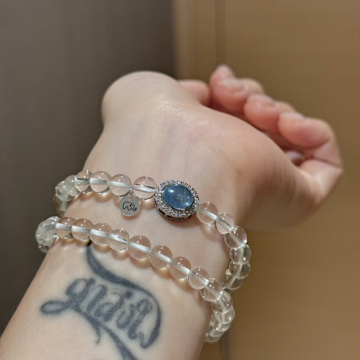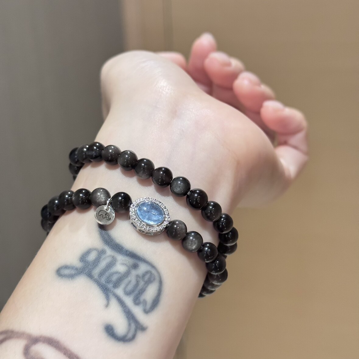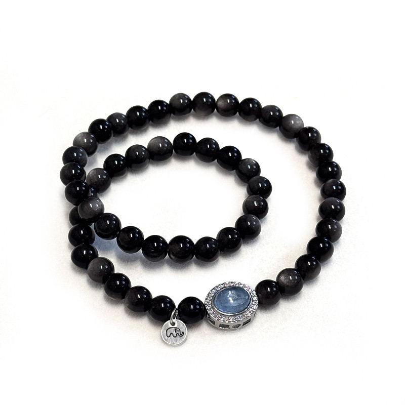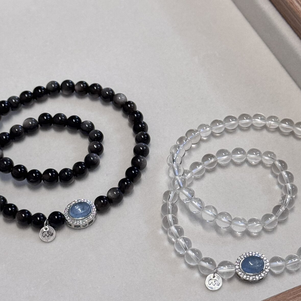 📚 贝奇手作· 海蓝宝盒子 银曜石白水晶双圈手串 清新净化好运