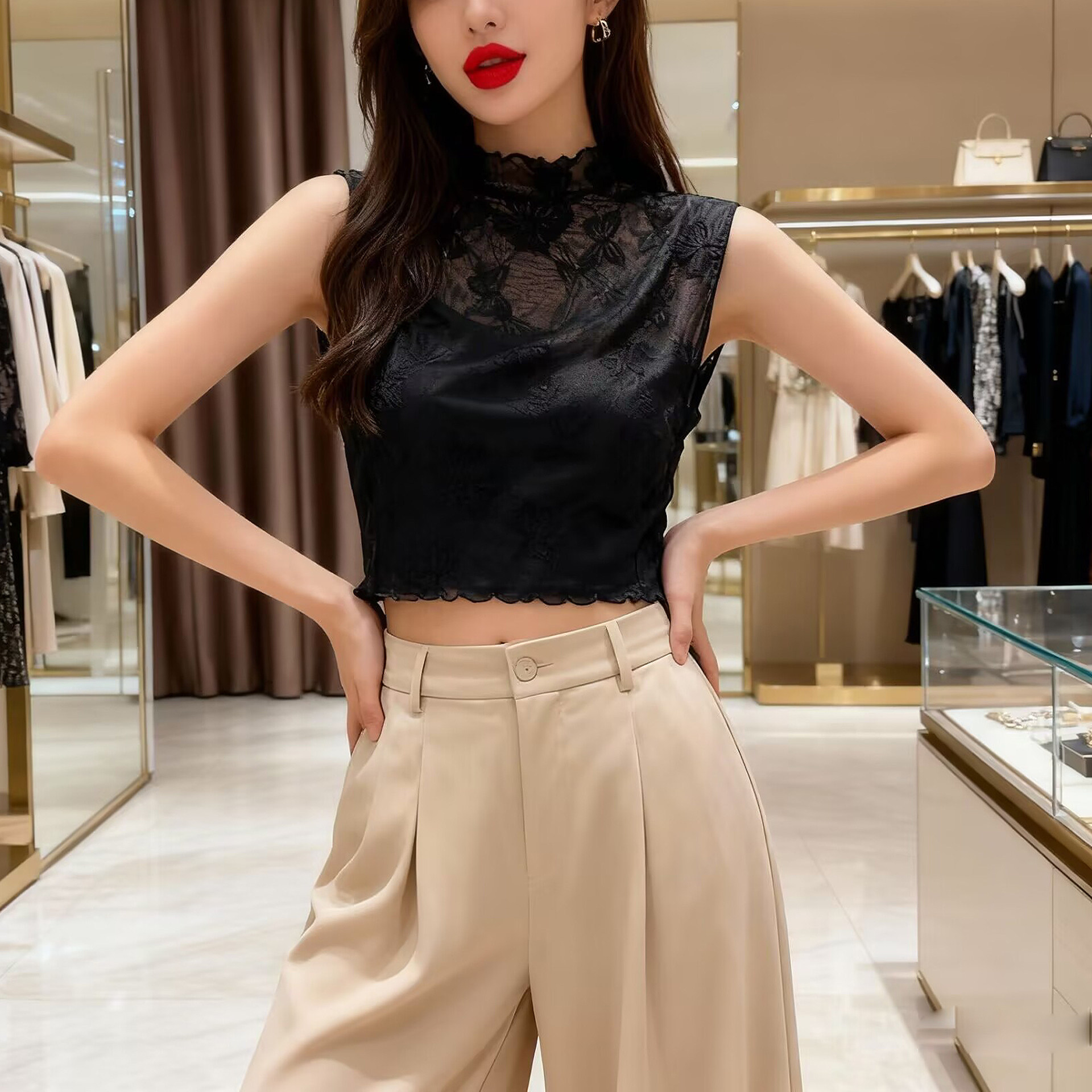 🔥小红书种草记!这款蕾丝假领子女百搭高档木耳边半高领无袖背心,简直太美了!💖
