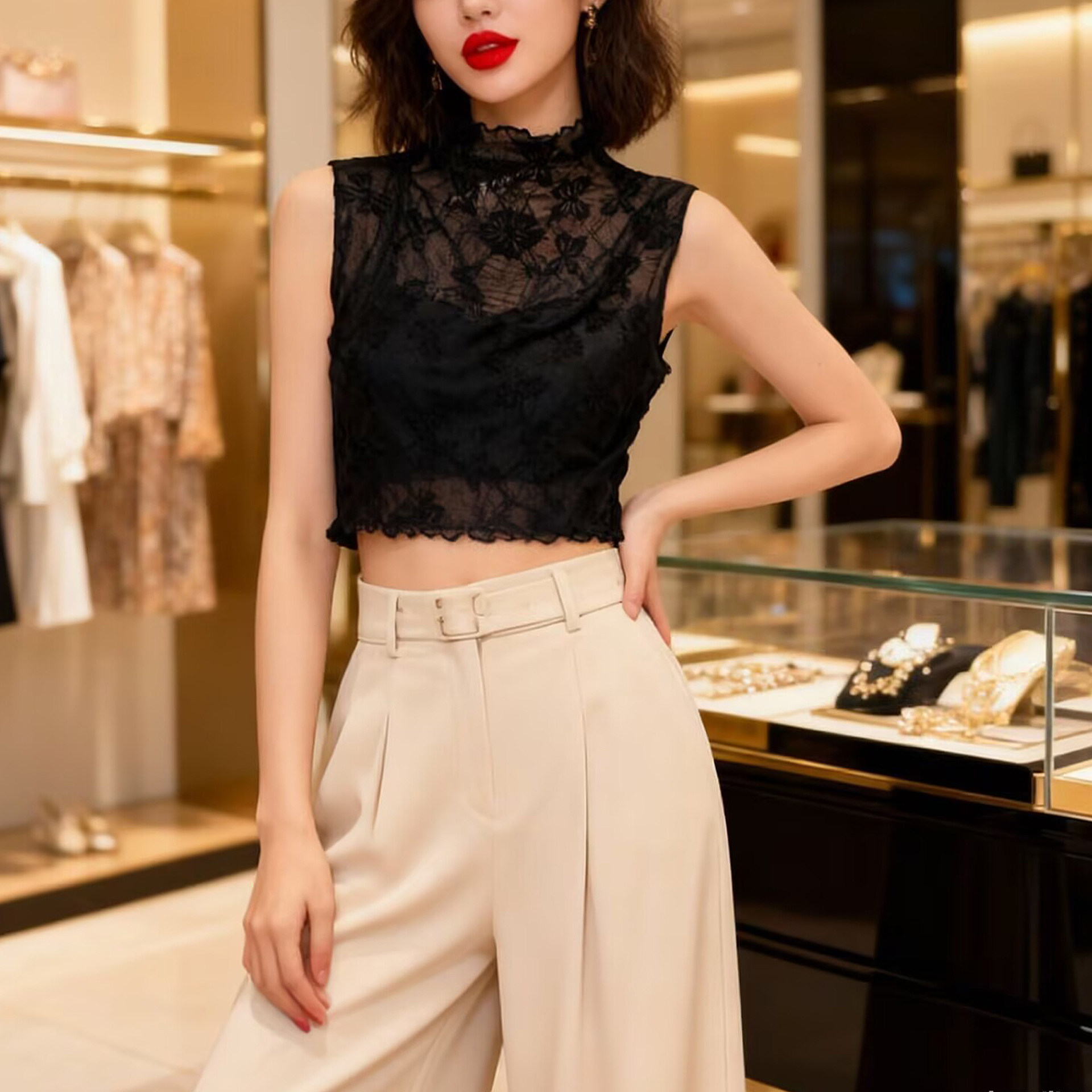 #时尚穿搭 #网纱打底衫 #叠穿 #蕾丝假领子 #高档木耳边半高领 #无袖背心 #券后价 #好物分享 #种草笔记