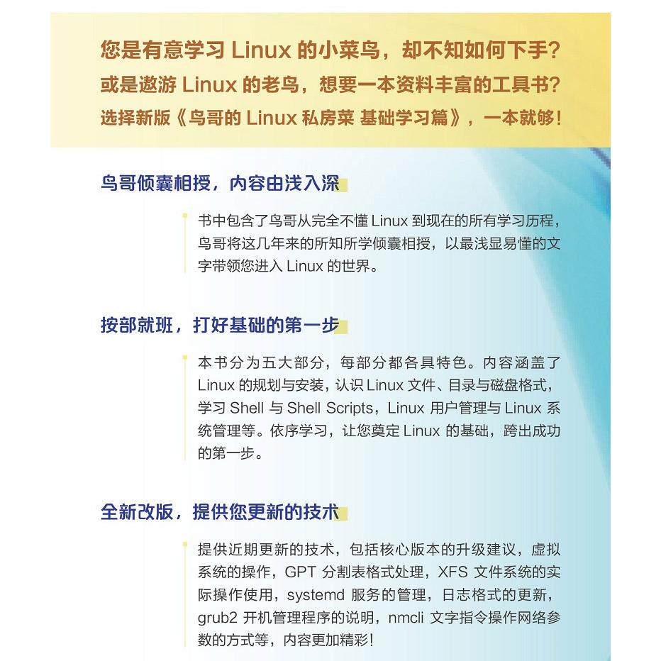 📚 鸟哥的Linux私房菜 基础学习篇第四版 linux操作系统教程从入门到精通书籍 鸟叔第4版计算机数据库编程shell技巧内核命令教程书籍