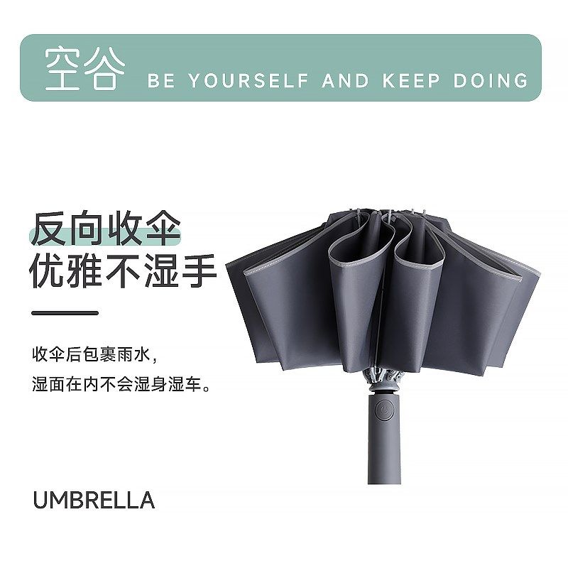 📚 空谷反向自动雨伞防回弹节节收轻便防雨防风加固新款三折叠8骨伞