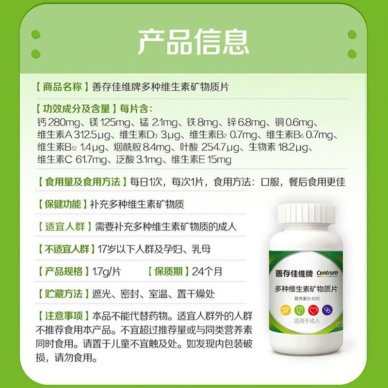 📚 善存佳维多种维生素复合片多维b族120粒维生素ac维生素e成人