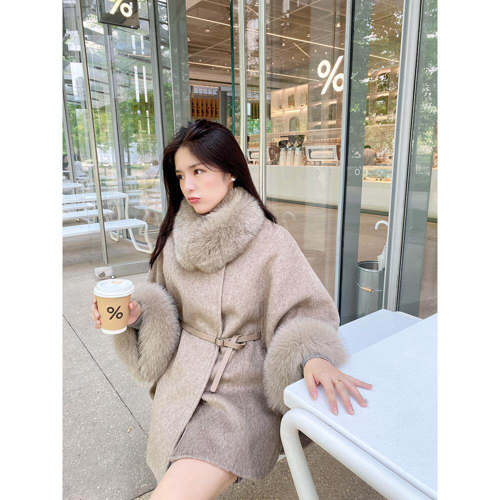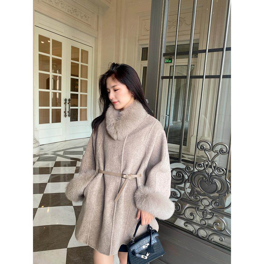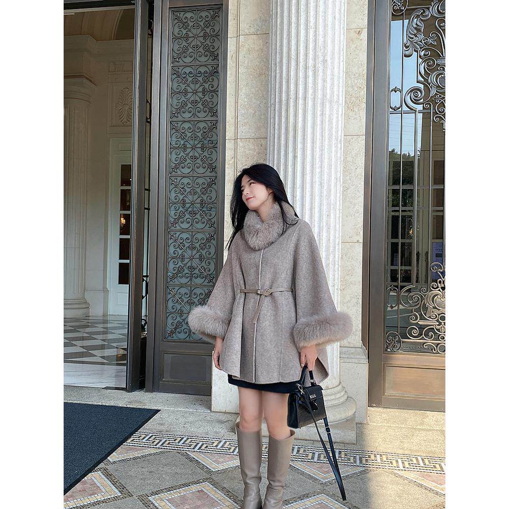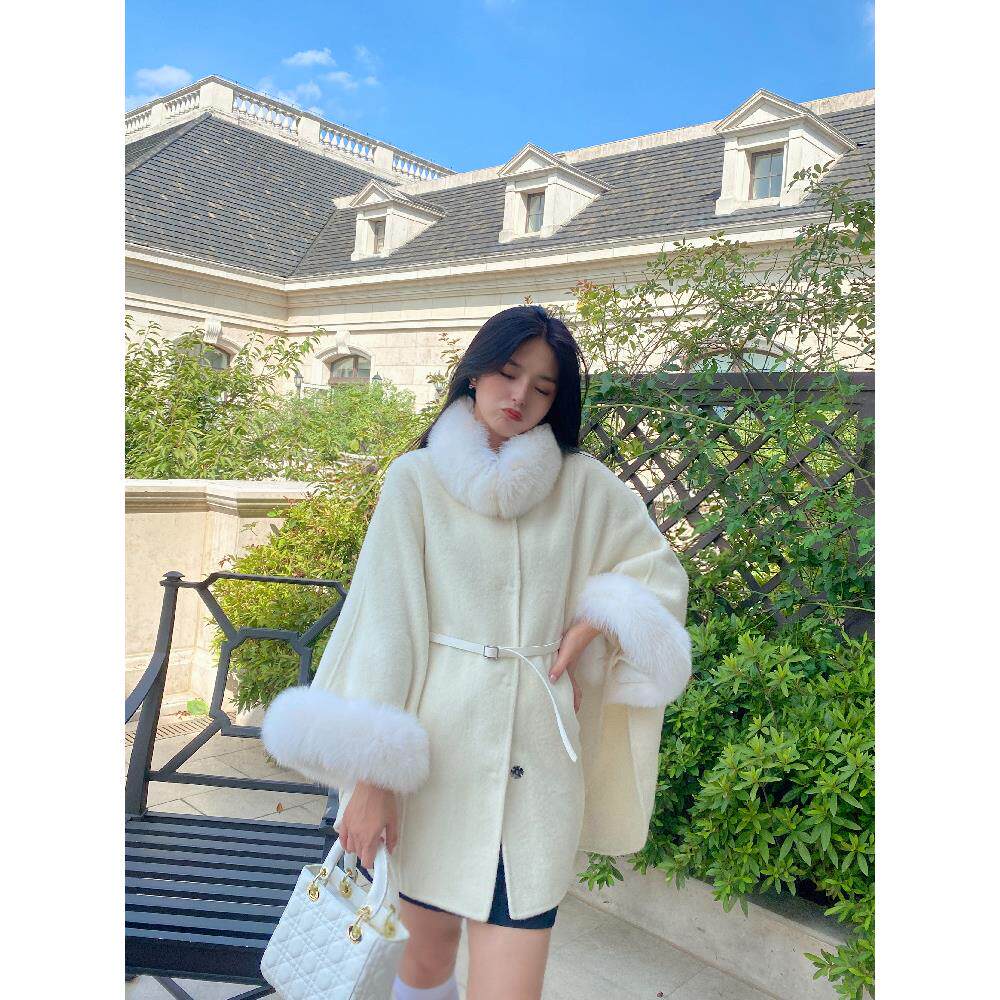 📚 氛围感新年斗篷高支澳羊毛狐狸毛双面尼大衣秋冬新款毛呢外套显瘦