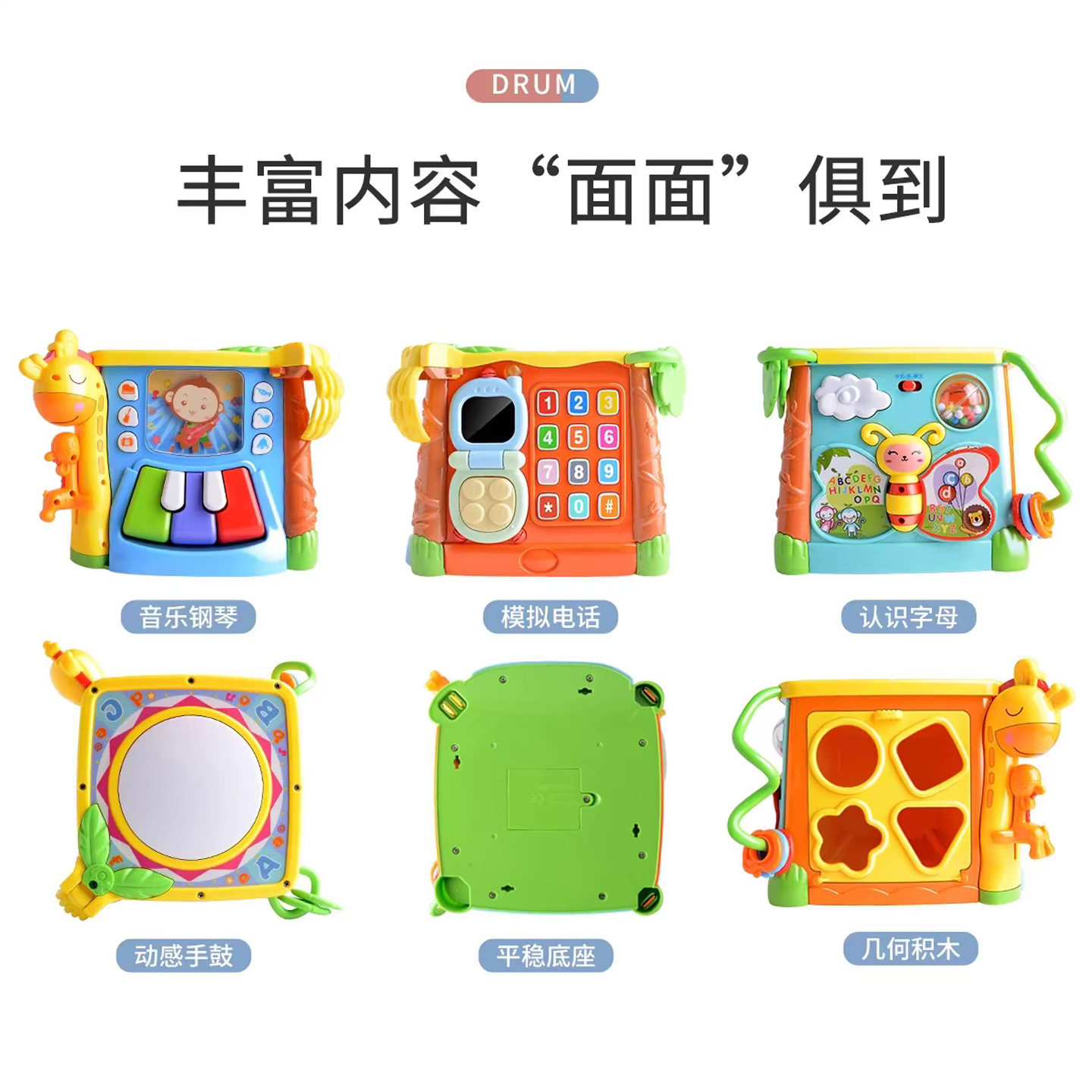 📚 谷雨六面体儿童玩具1一3岁音乐手拍鼓宝宝因果关系玩具形状配对盒