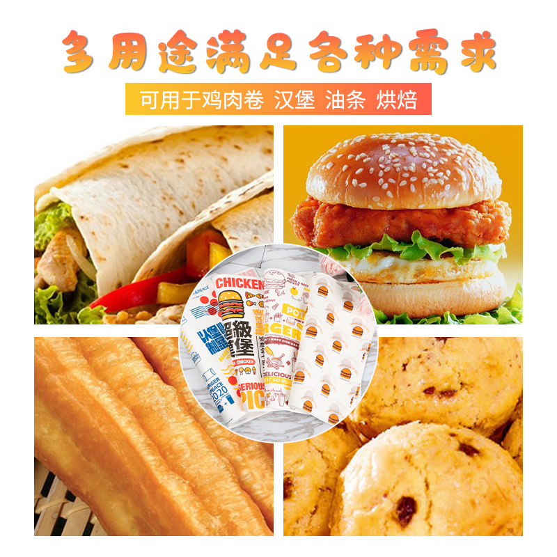 📚 烘焙防油纸面包垫盘纸汉堡包油纸 三明治面包包装纸50张