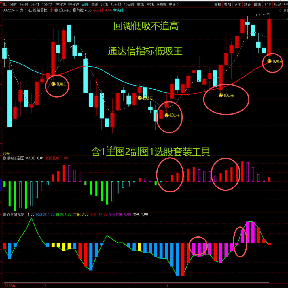 📚 回调低吸不追高通达信指标低吸王含1主图2副图1选股套装工具