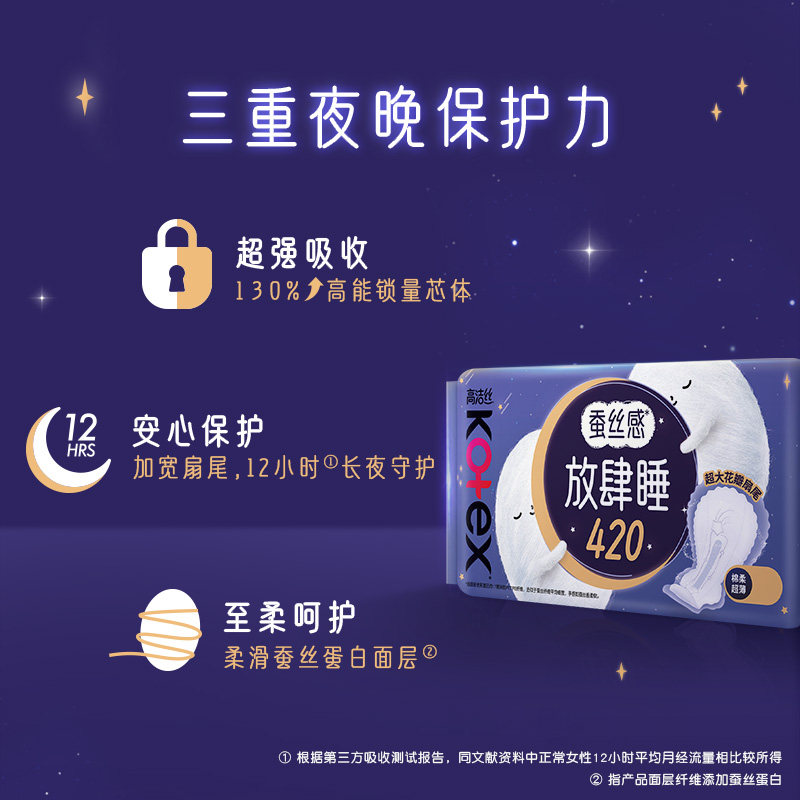 📚 【U先试用】高洁丝放肆睡卫生巾夜用加长超长熟睡420mm16片旗舰店
