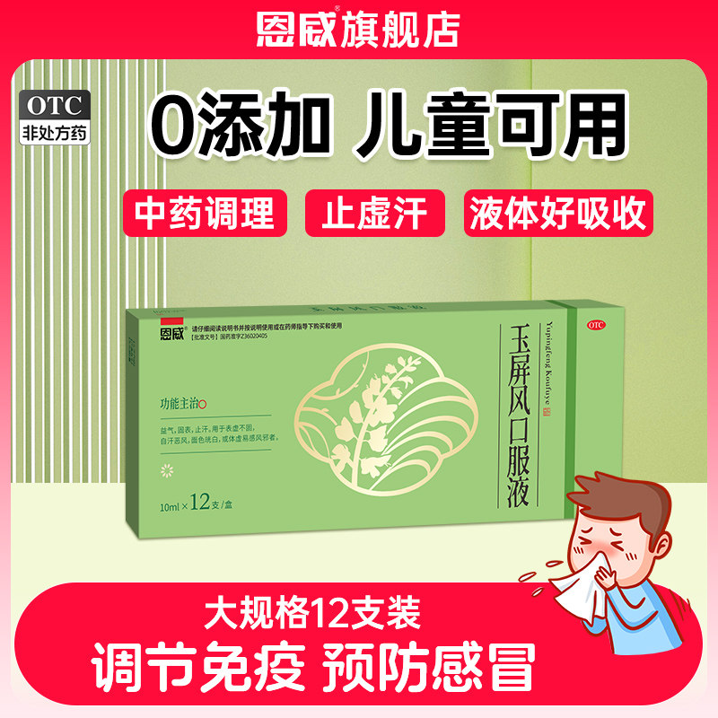 📚 玉屏风口服液官方旗舰店玉屏风散颗粒小儿易感冒止汗黄芪精正品