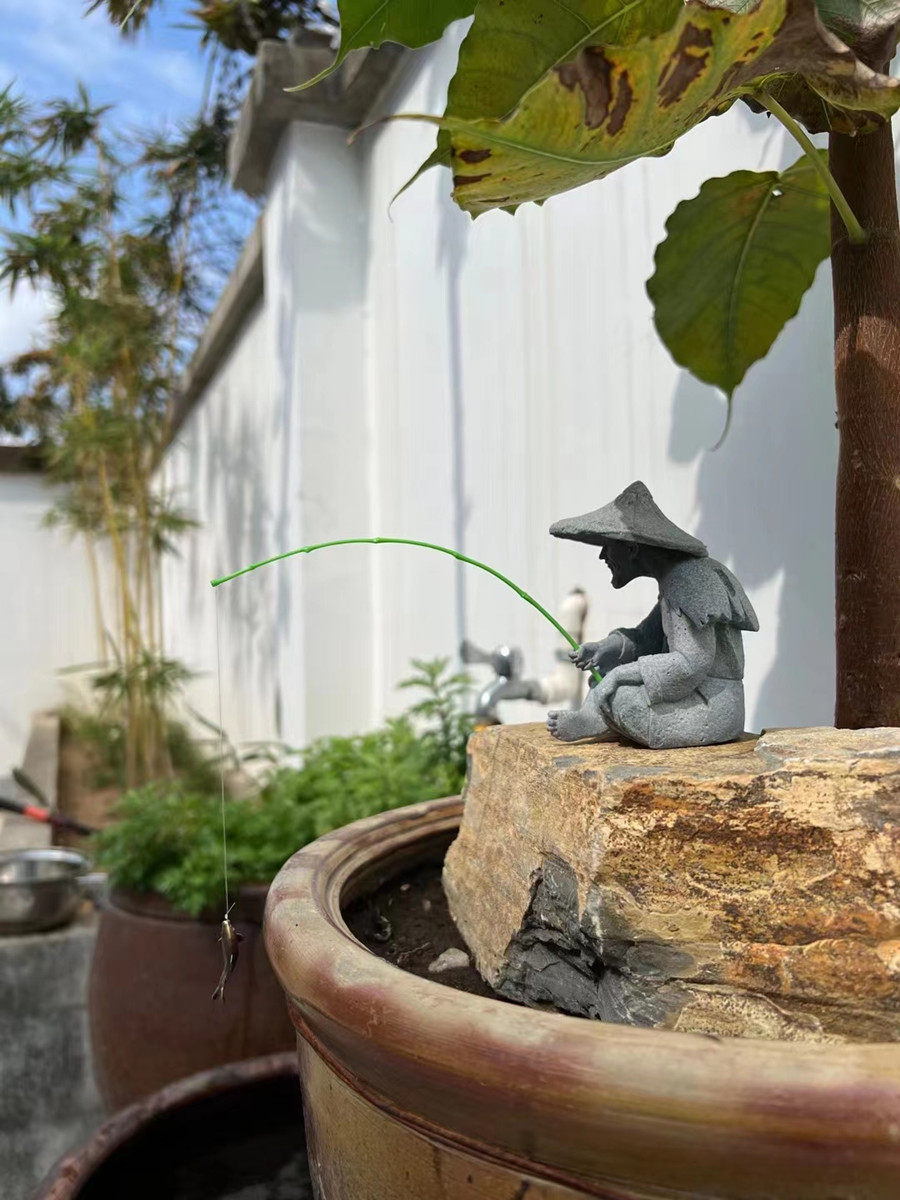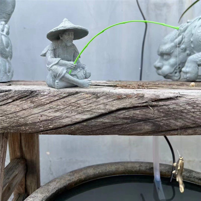 📚 创意姜太公钓鱼古代人物假山流水微景观造景生态鱼缸内装饰品摆件