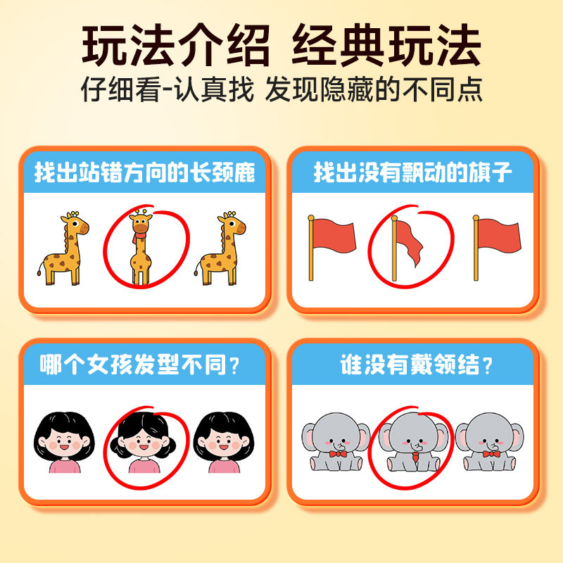 💖我个人非常喜欢这本书籍,每次翻开都有新的发现和收获。书中涵盖了各种有趣的找茬游戏,孩子们可以在游戏中锻炼自己的观察力和思维能力。而且书中还提供了多种亲子互动环节,让家长和孩子们一起参与,增进亲子关系。