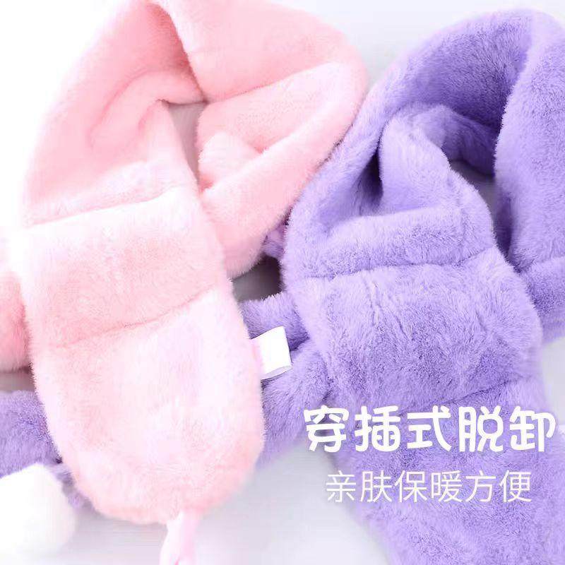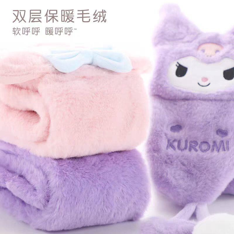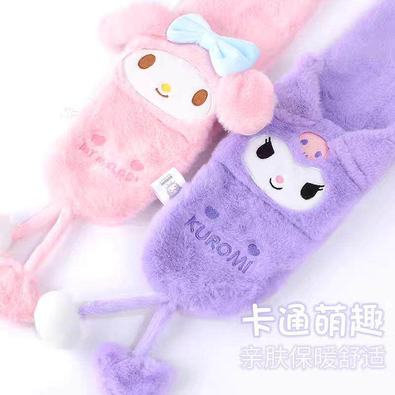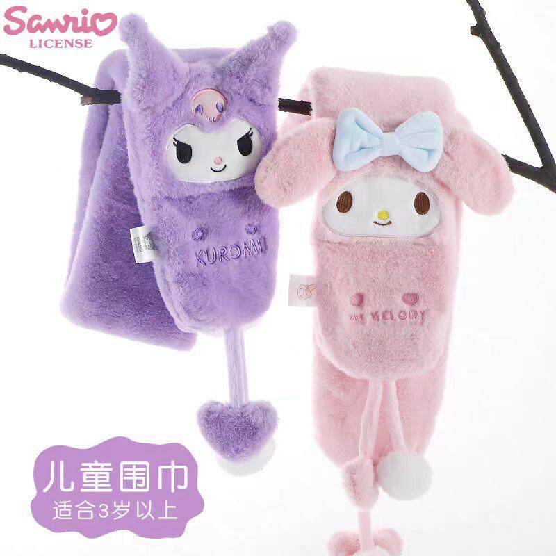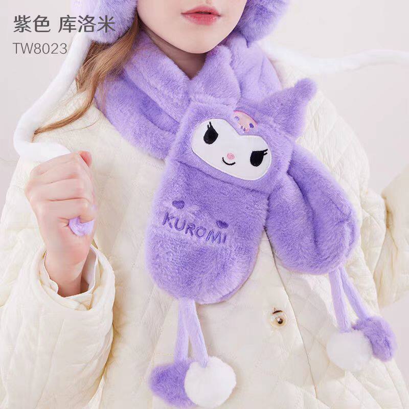 📚 三丽鸥正版毛绒围巾加厚护颈秋冬季库洛米卡通女孩围脖带球球礼物