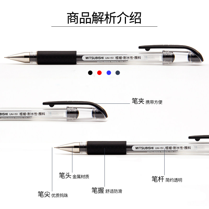 📚 日本三菱中性笔UM151办公签字笔黑日系0.38mm财务专用水笔防水笔