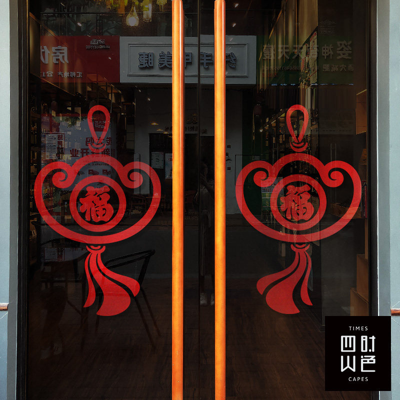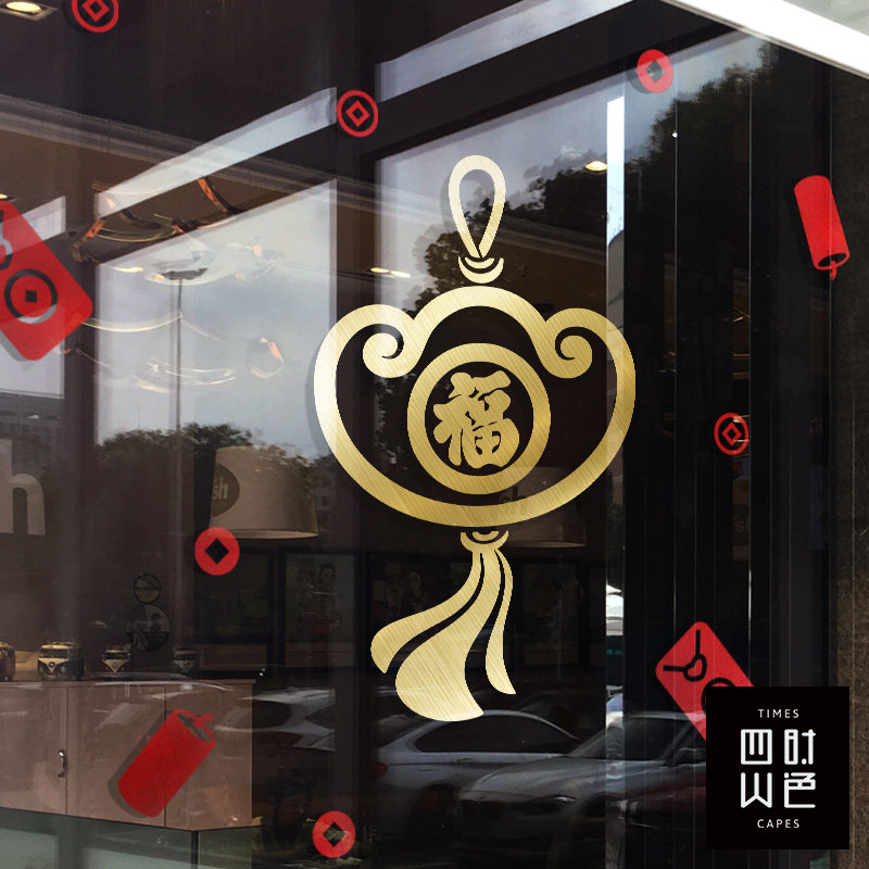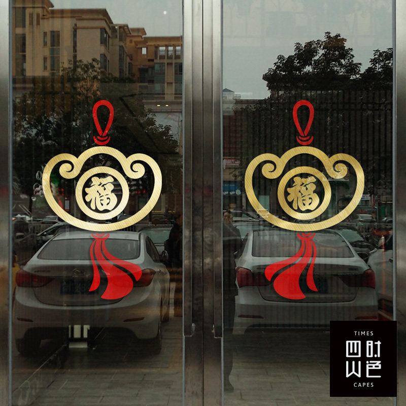 📚 中式福字贴纸玻璃门装饰招财金元宝图案推拉门贴纸店铺橱窗玻璃贴