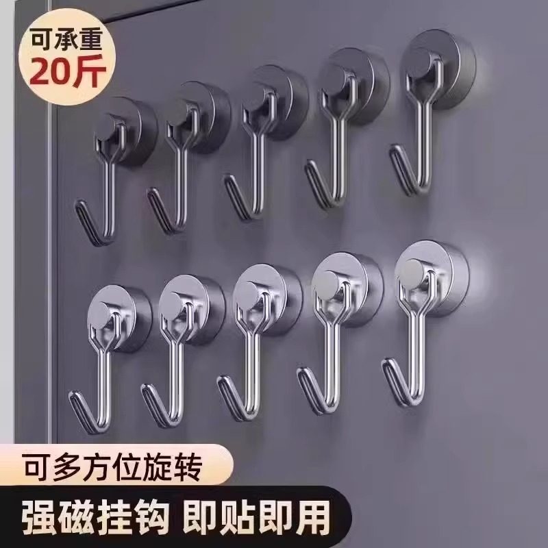 📚 磁吸挂钩免打孔壁挂式无痕冰箱磁铁钥匙挂钩创意门后吸铁磁力粘钩