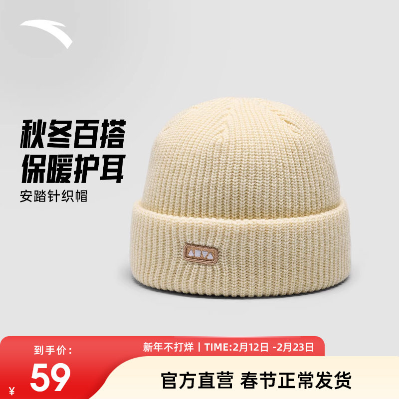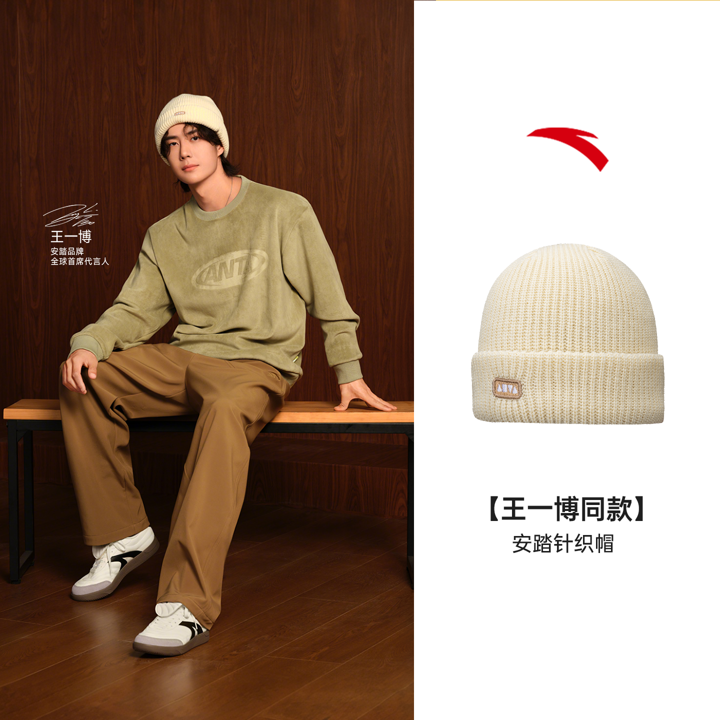 📚 【王一博同款】安踏针织帽翻边运动帽冬季保暖刺绣瓜皮帽毛线帽子