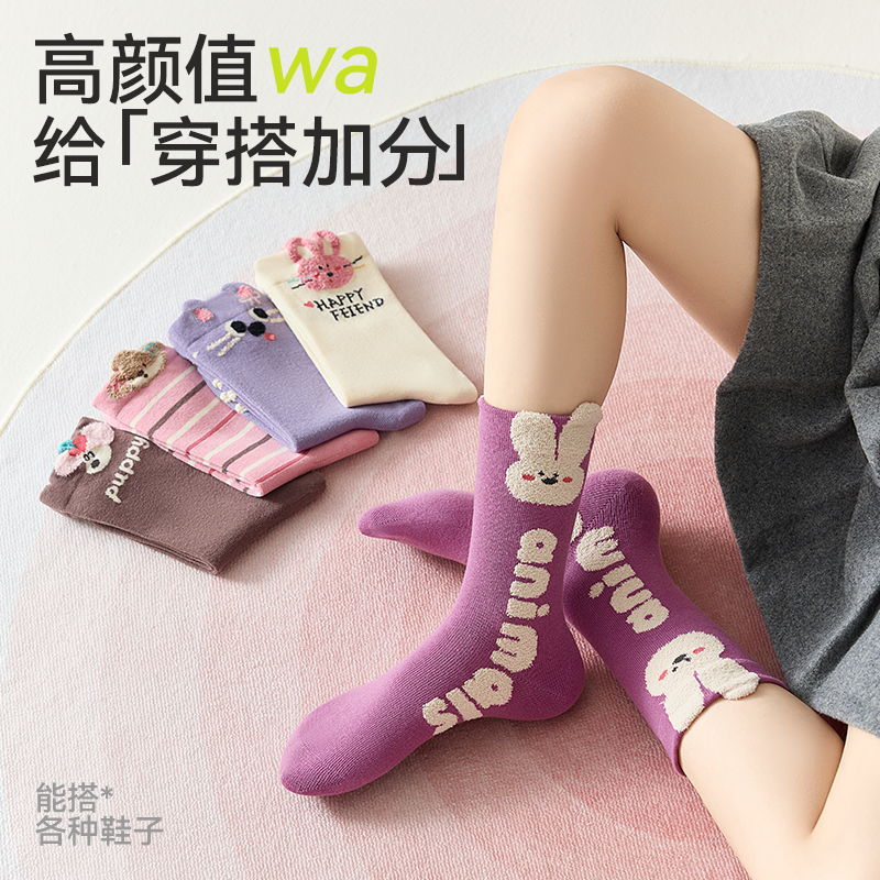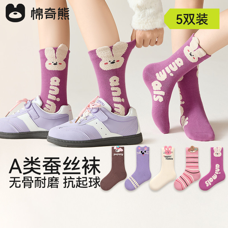 📚 【蚕丝袜】儿童袜子A类棉袜女童中筒袜中大童卡通潮袜无骨长筒袜