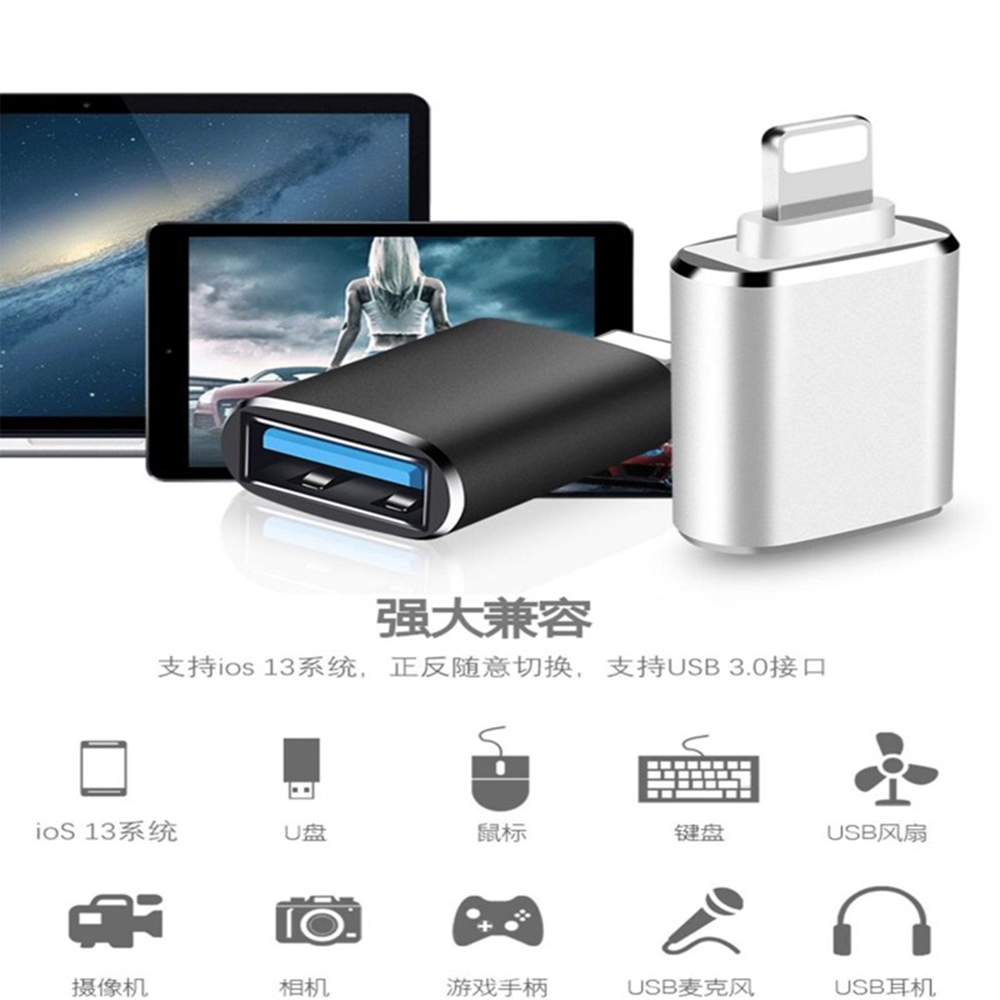 📚 usb转lightning接口适用苹果iphone15/14/13/12pro/11/XR/XS/MAX手机OTG转接头连接U盘下载ipad平板转换器