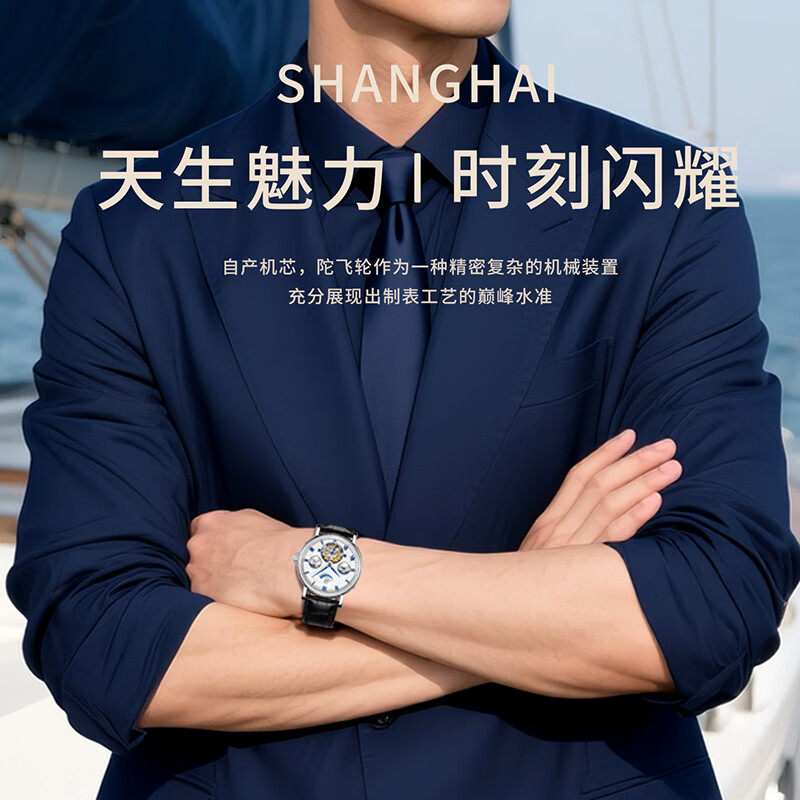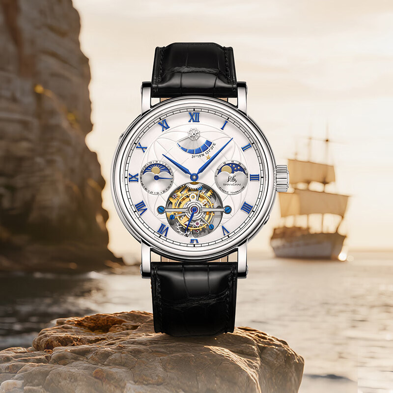 📚 【新品】上海手表男款复兴系列大航海陀飞轮商务机械腕表
