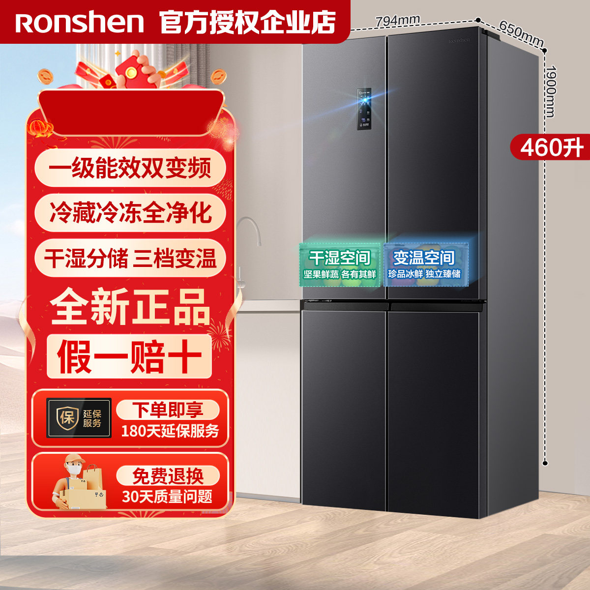 📚 容声460/466升十字对开门超薄嵌入一级变频风冷大容量家用电冰箱