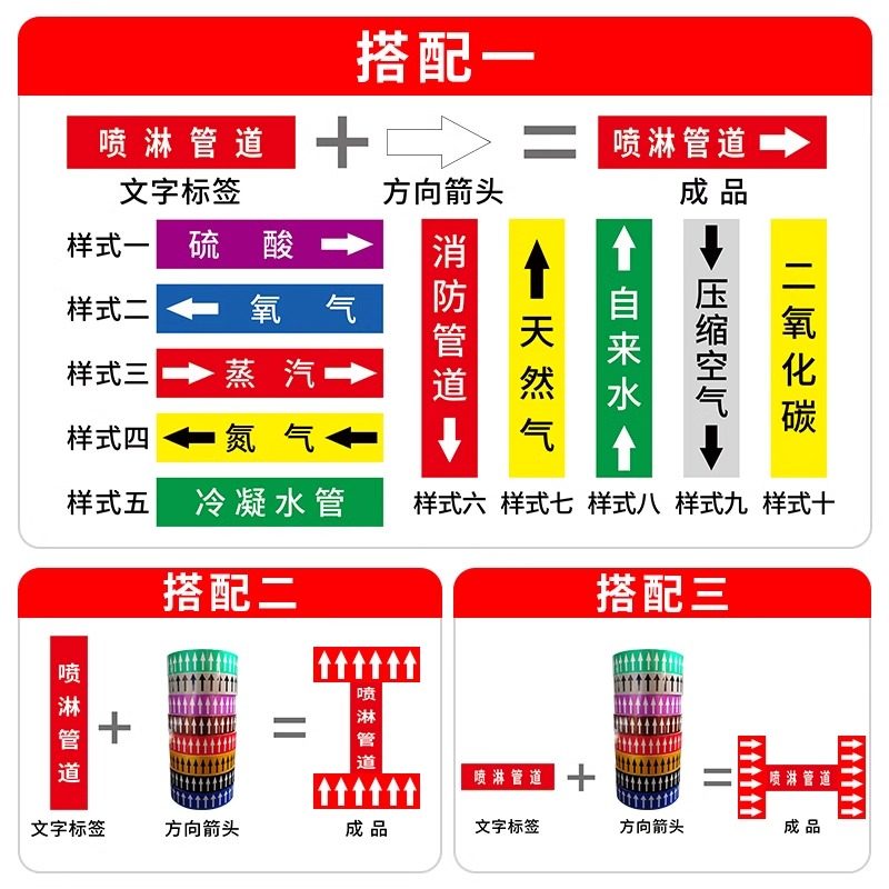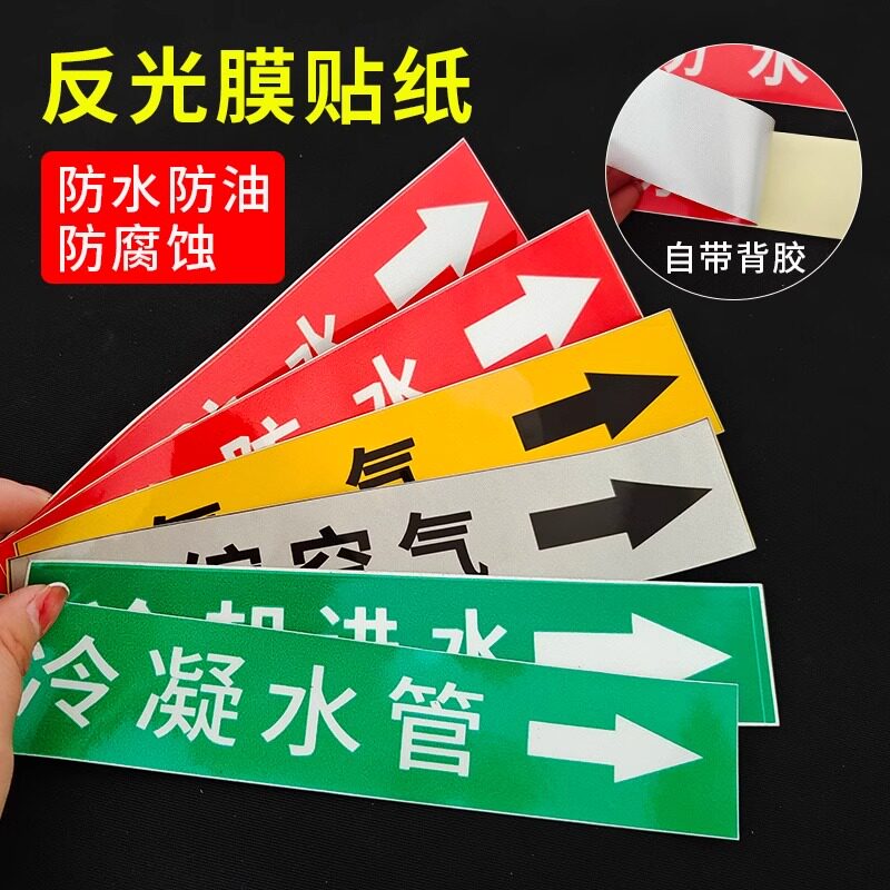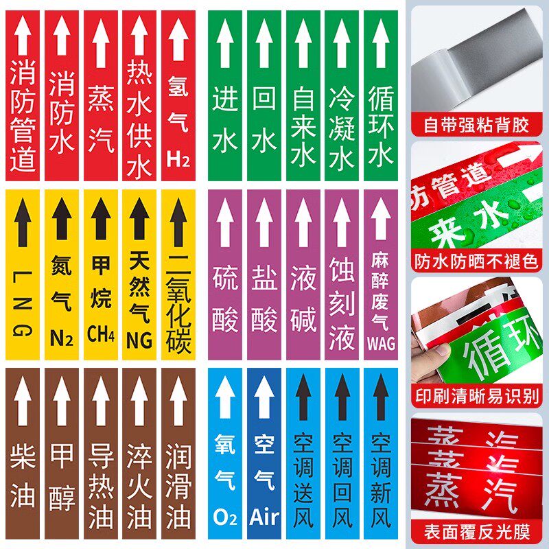 📚 消防喷淋管道标识贴纸定制介质流向标签食品化工企业目视化国标工业介质箭头色环指示自来水压缩空气管道标识