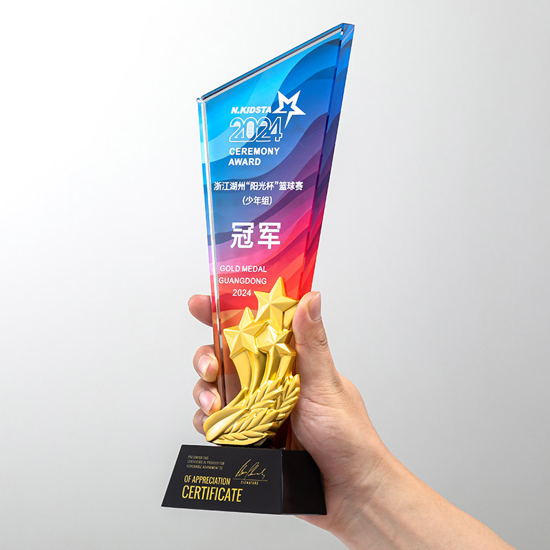 📚 金属水晶奖杯定制高级感年会颁奖优秀员工销冠团队合作经销商奖牌