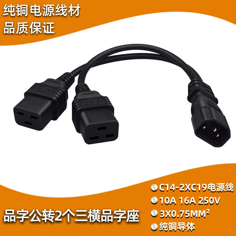 📚 10A品字公头对16A三横品字母头电源线IEC320 C14转C19纯铜电脑线