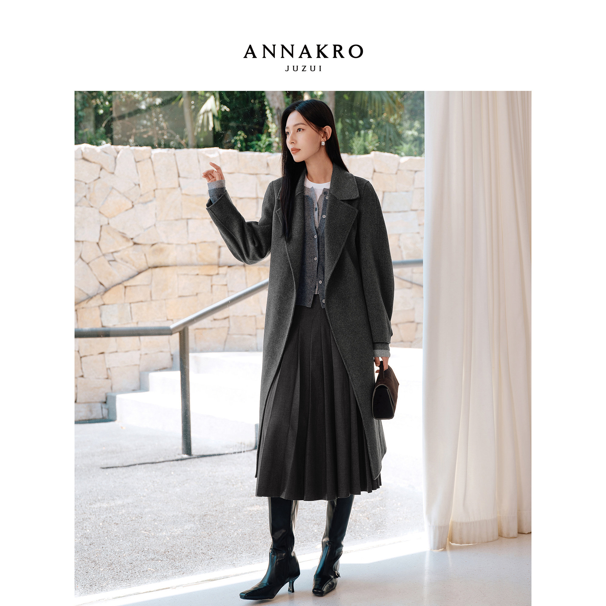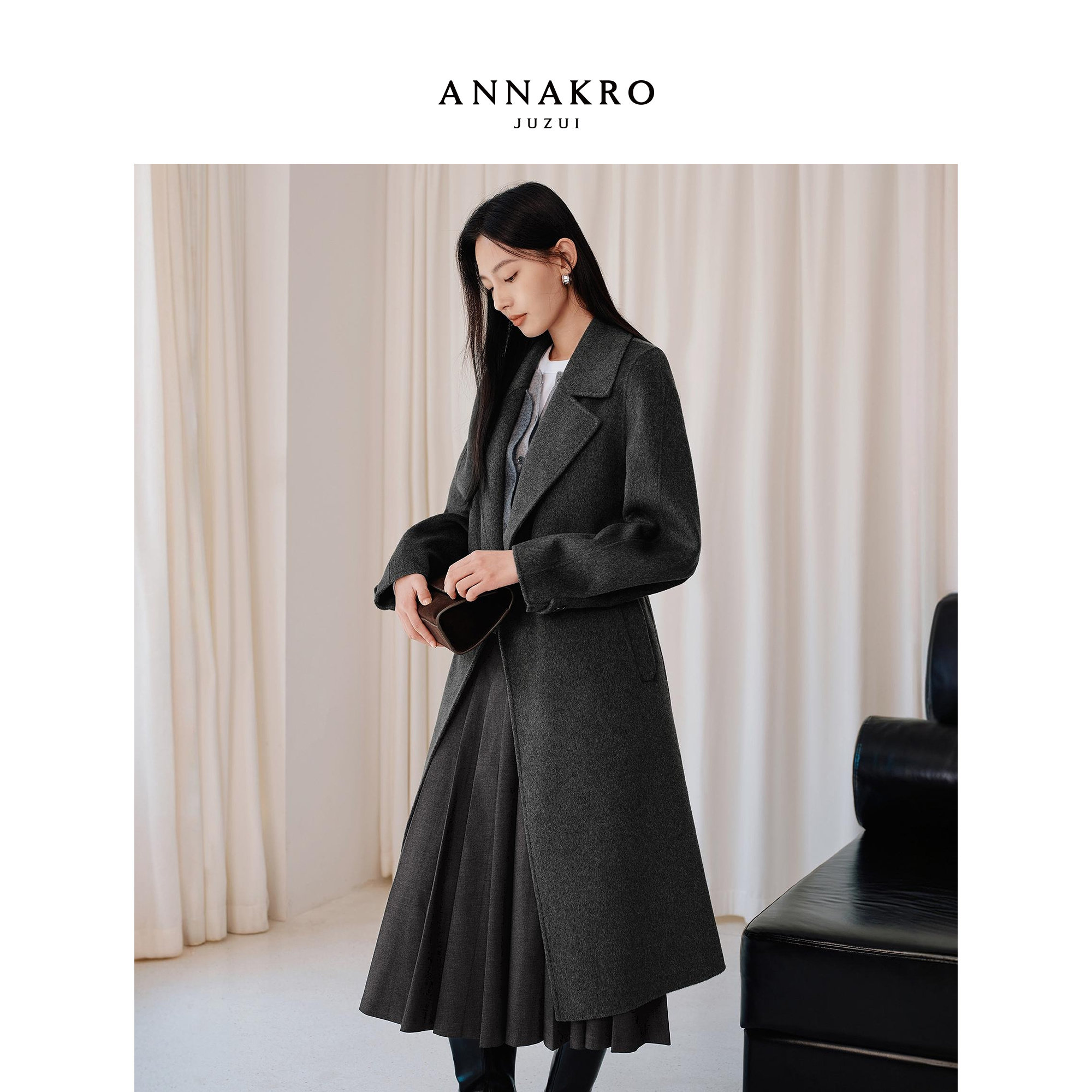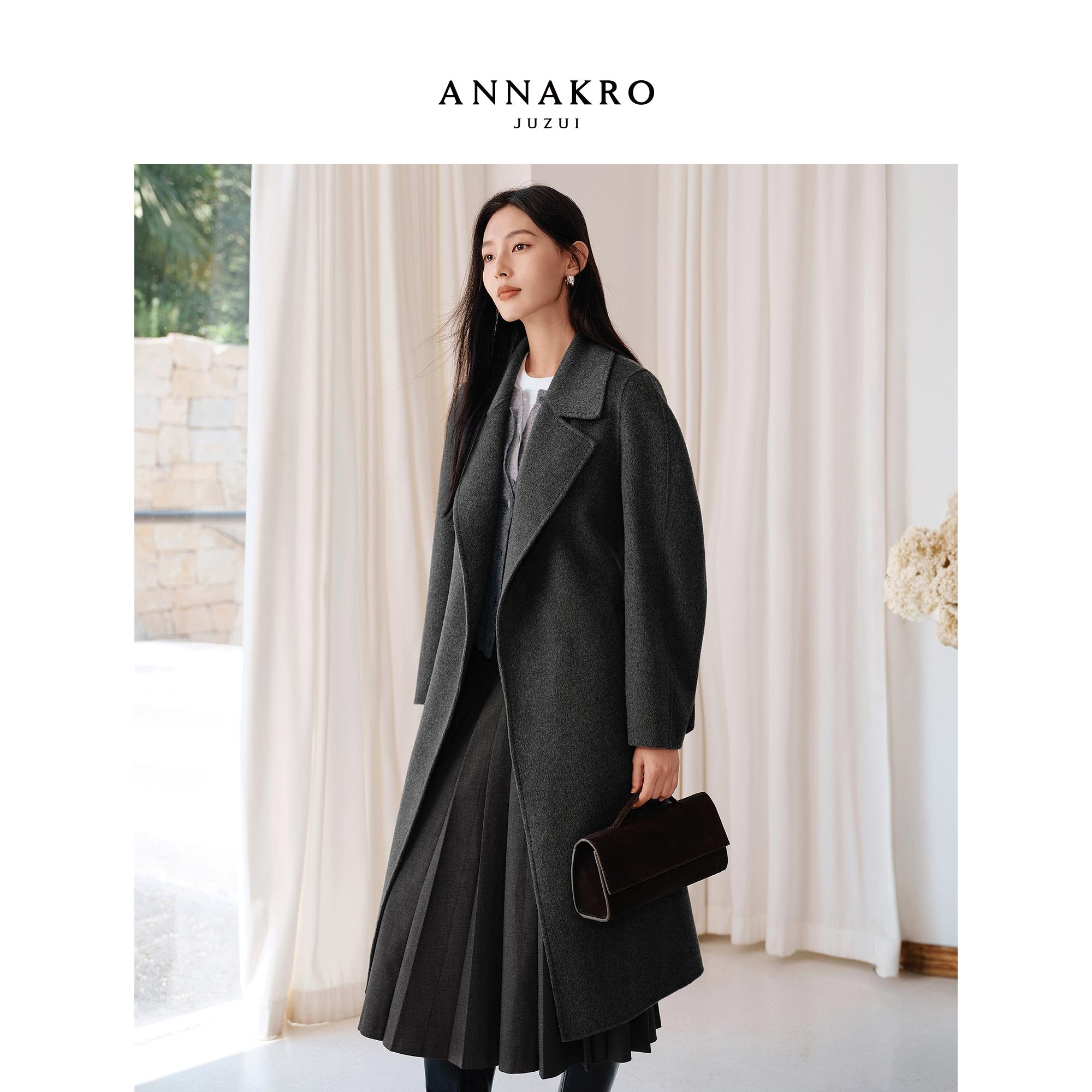 📚 【真我系列】玖姿安娜蔻极简ROW风羊毛双面呢大衣女2025冬季新款