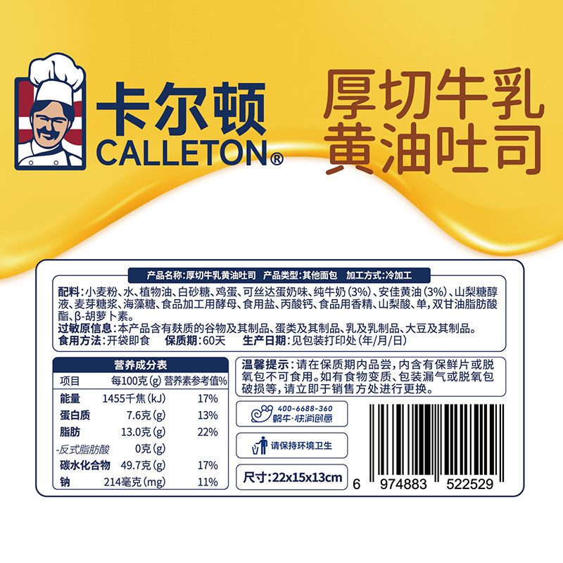 📚 卡尔顿厚切牛乳黄油吐司水牛奶面包早餐整箱食品零食营养学生速食