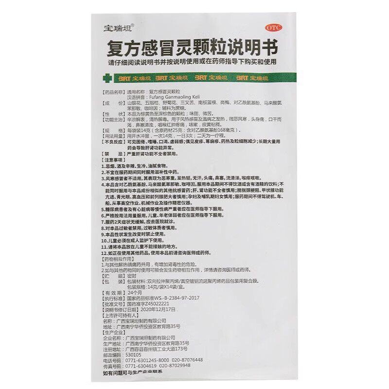 📚 宝瑞坦 复方感冒灵颗粒 14g*14袋/盒 清热截图风热感冒咽喉疼痛