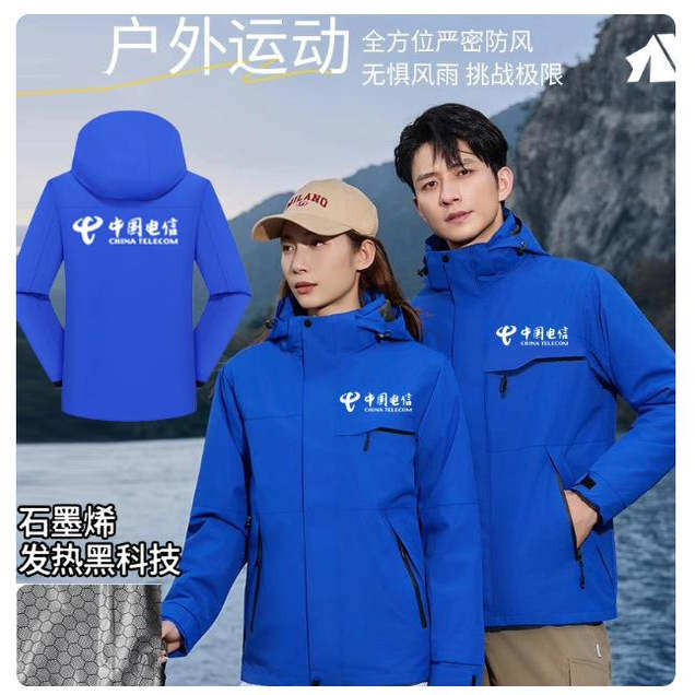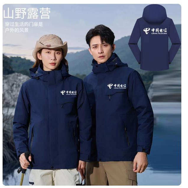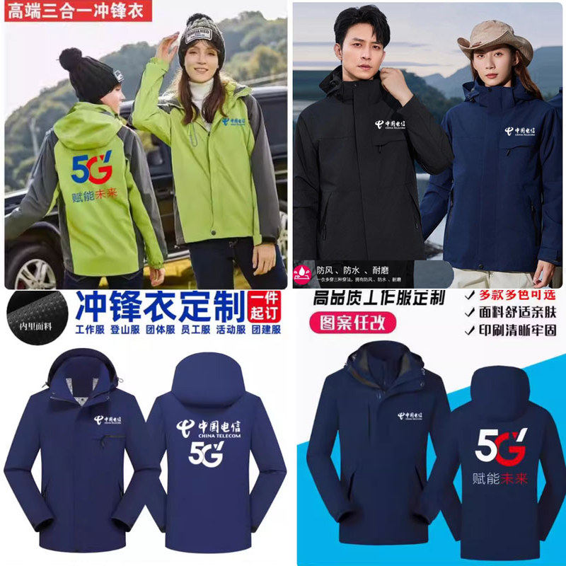 📚 冬中国电信5G冲锋衣工作服定制印字刺绣logo团队三合一可拆卸外套