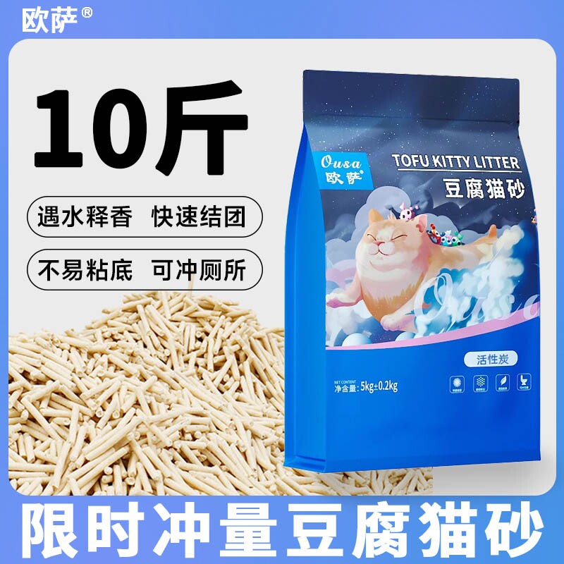 📚 欧萨纯豆腐猫砂除臭不粘底家庭专用优质低尘防臭纯豆腐猫砂10斤装