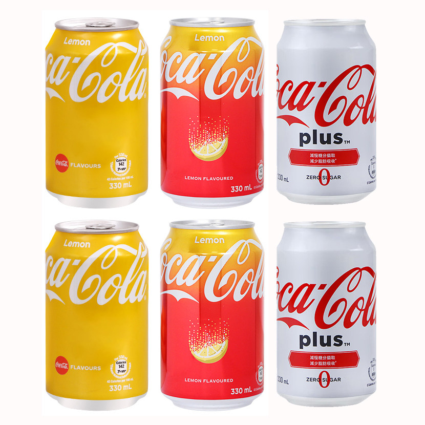 📚 6罐装/香港版柠檬味可乐进口无糖黄罐可口可乐碳酸饮料易拉罐整组
