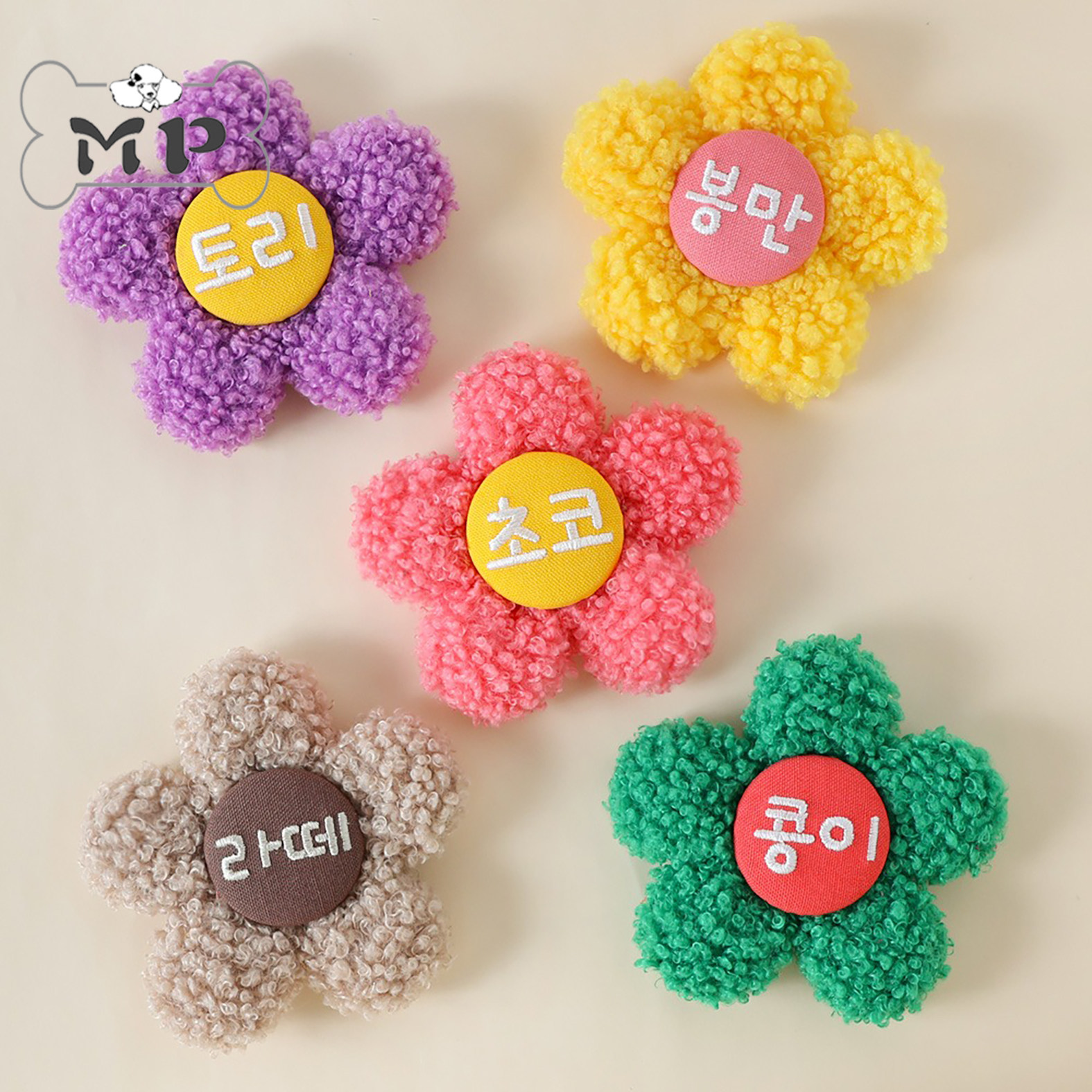 📚 『Memory Pet』韩国epeels宠物名字定制项圈胸背装饰毛绒花朵胸针