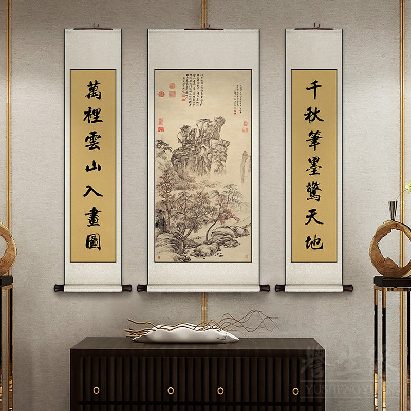 📚 蟠桃双鹤图中堂卷轴挂画客厅装饰画中式山水国画餐厅书房明清古画