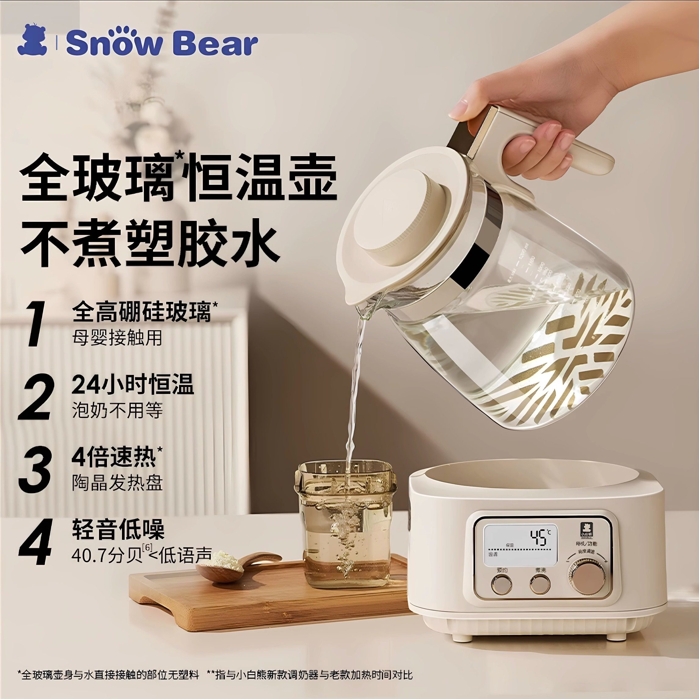 📚 SnowBear小白熊全玻璃恒温电热水壶养生婴儿专用家用烧水调奶器