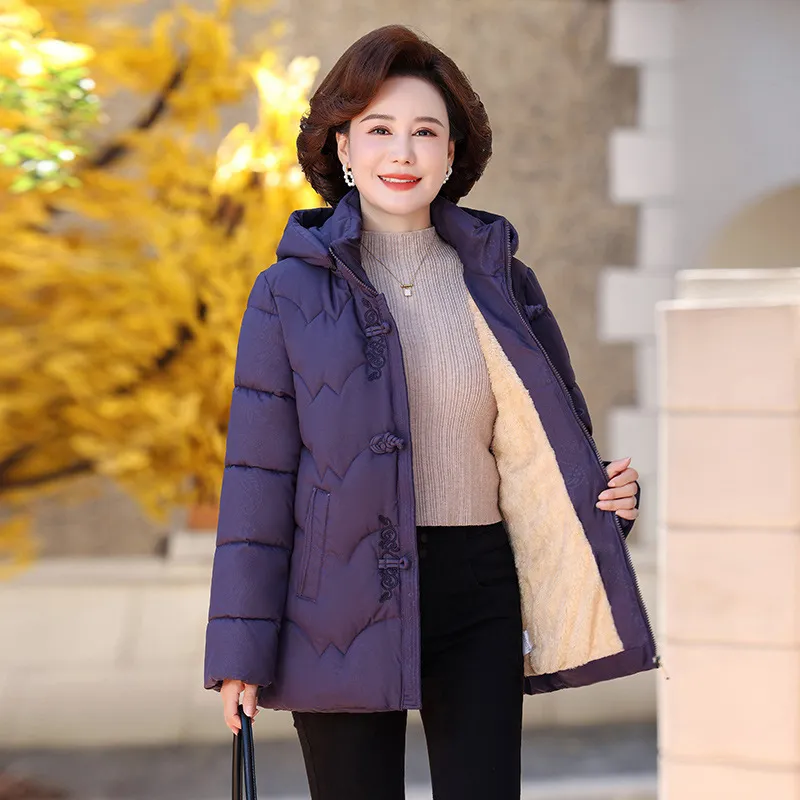 📚 中老年女妈妈冬季加绒加厚羽绒棉服连帽老人太太冬装奶奶棉衣外套