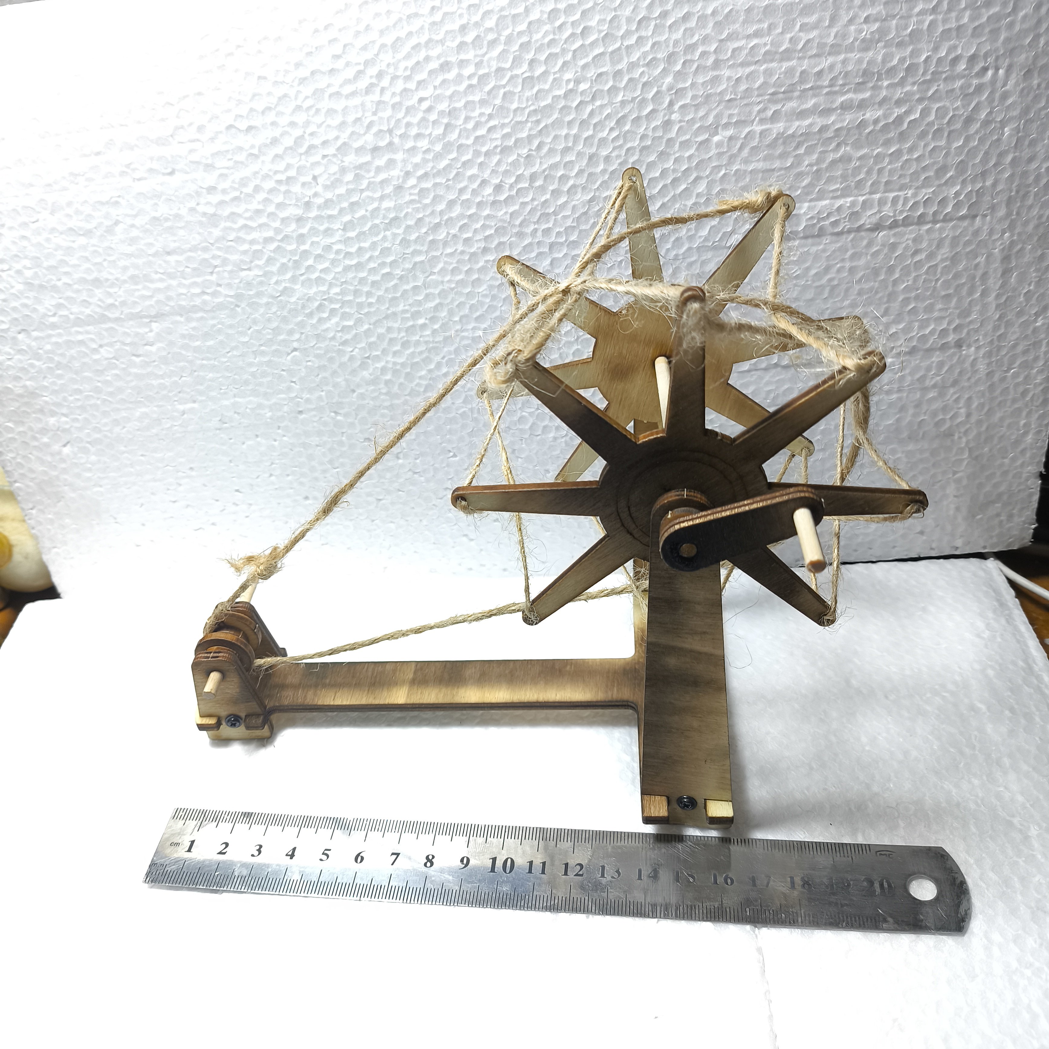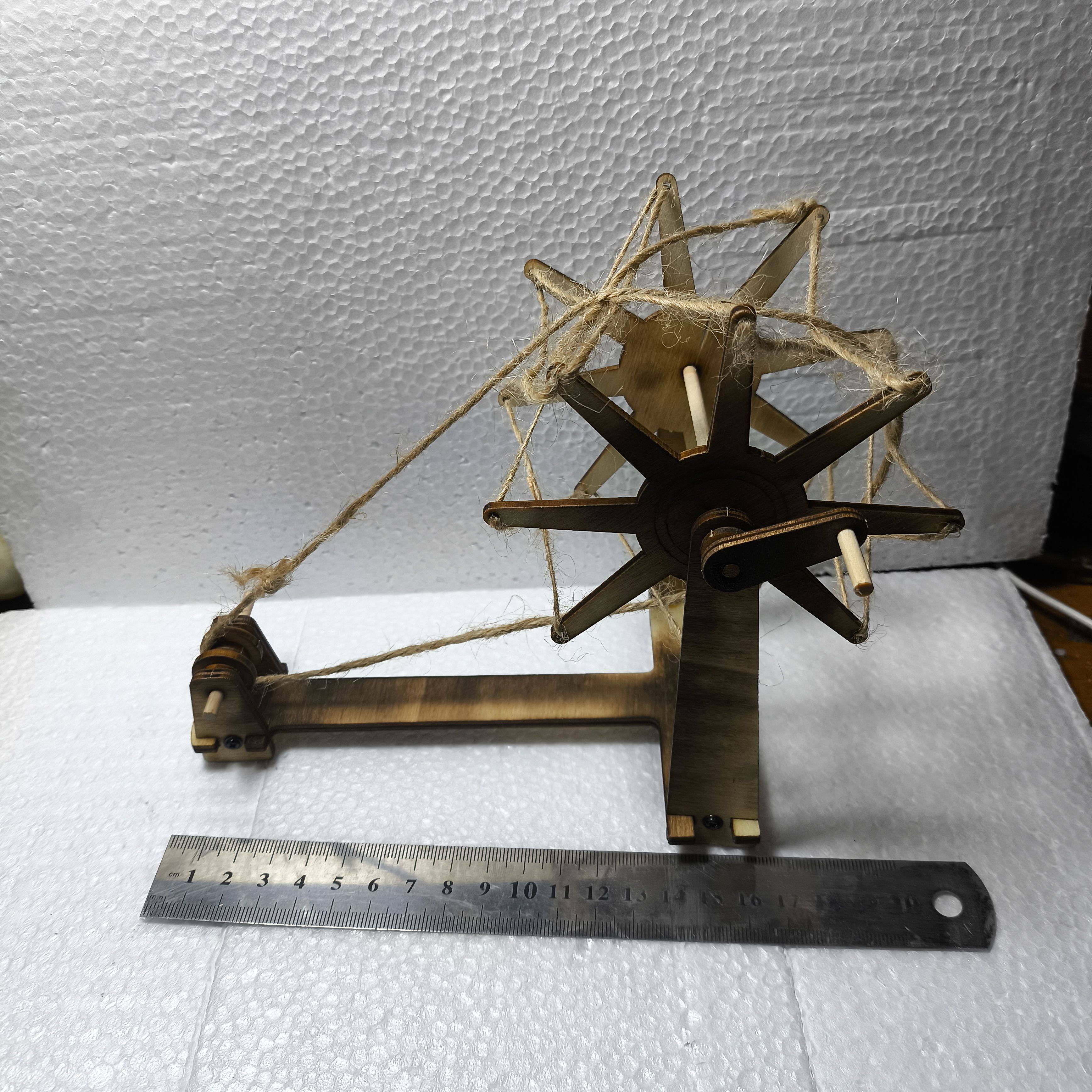 📚 手摇纺线车模型手摇纺车可以转动麻绳纺车diy农耕工具老农具