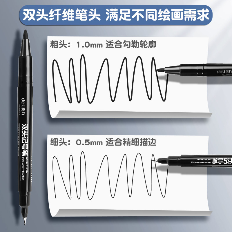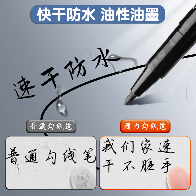 📚 得力记号笔美术专用勾线笔黑色粗头工地马克笔小学生油性防水防油不掉色不褪色红色速干快递可擦儿童物流水笔