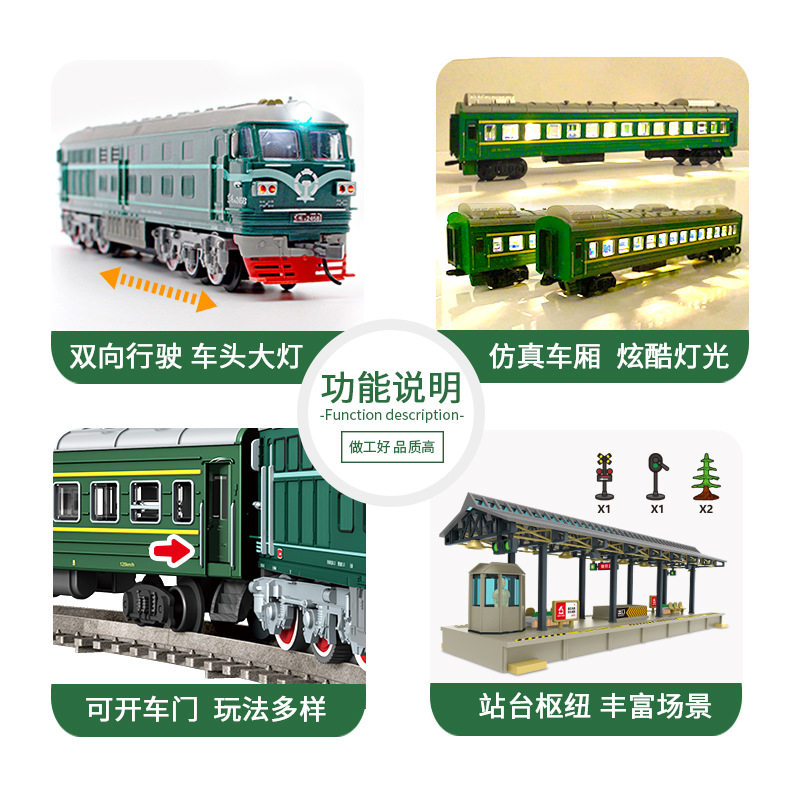 📚 仿真小火车轨道礼盒电动高铁绿皮车东风4B复古模型大男孩儿童玩具