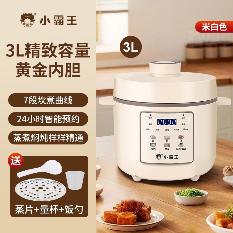 📚 小霸王上蒸下煮电压力锅3L小型家多功能煲电高压锅用预约电饭智能