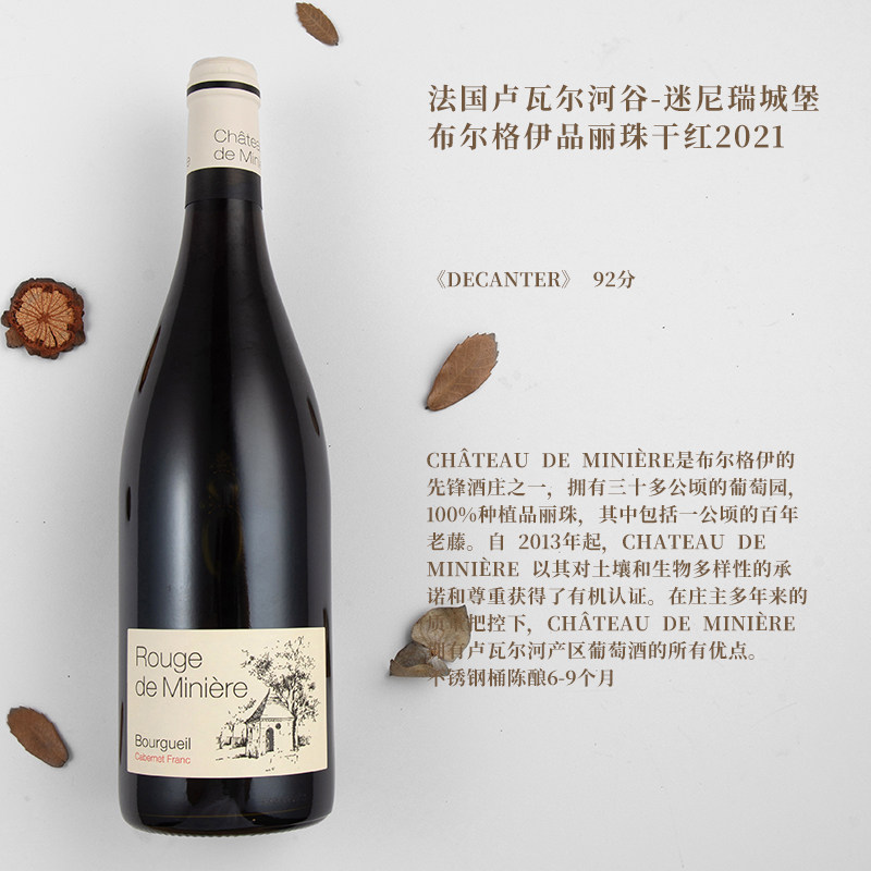 📚 Decanter92!法国卢瓦尔河谷迷尼瑞城堡Bourgueil品丽珠干红葡萄酒
