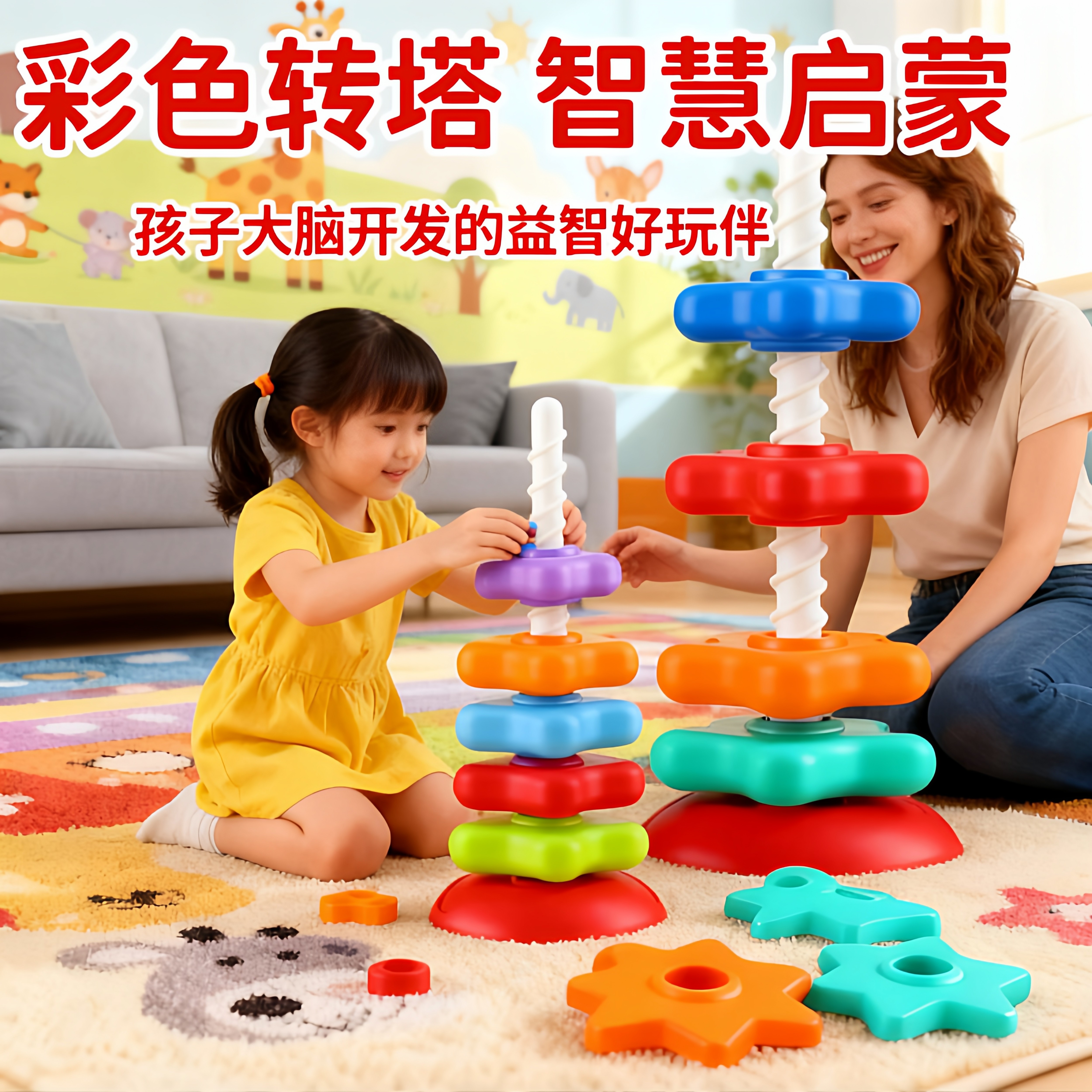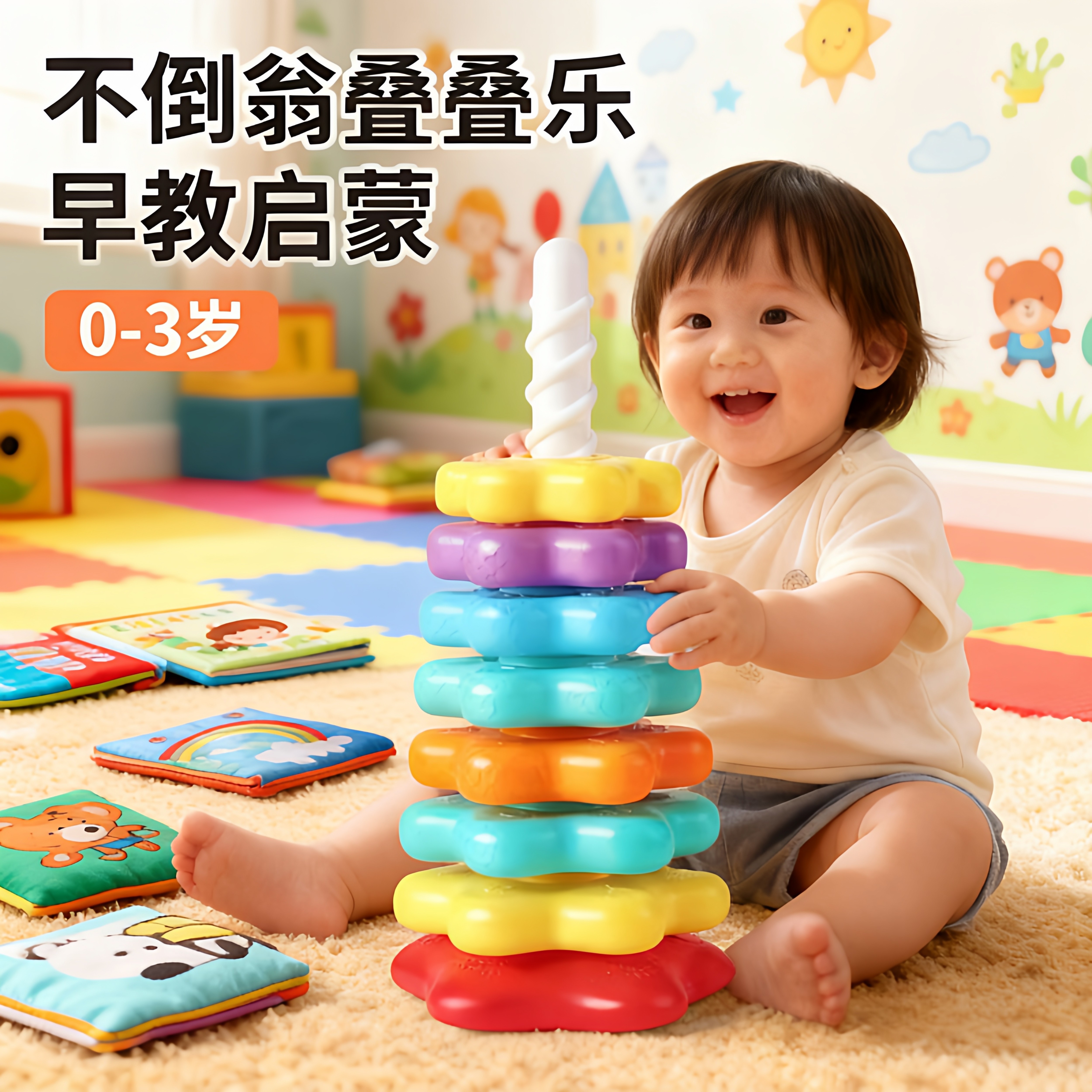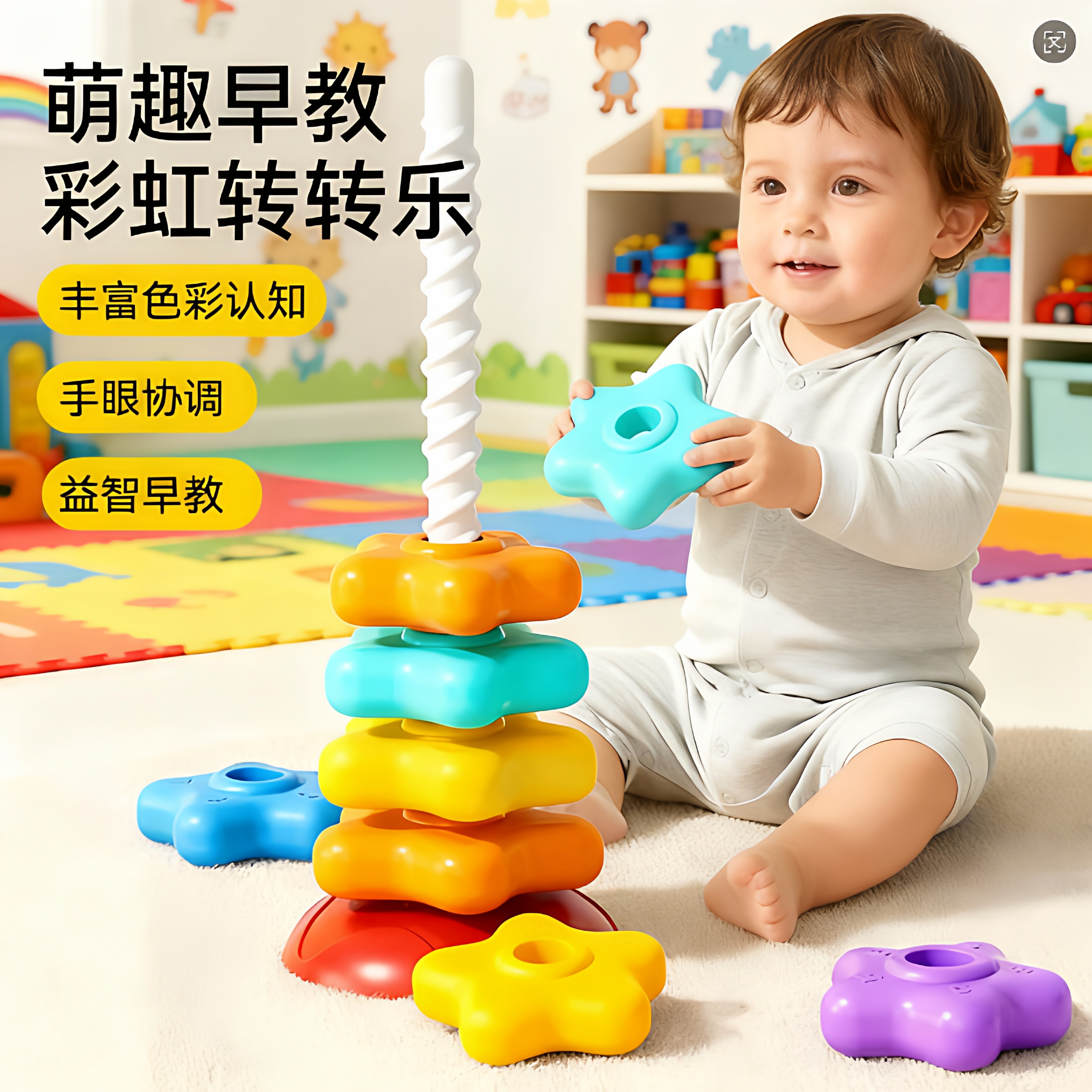 📚 彩虹转转乐旋转叠叠乐婴儿转转塔可啃咬0一1岁宝宝玩具趣味早教