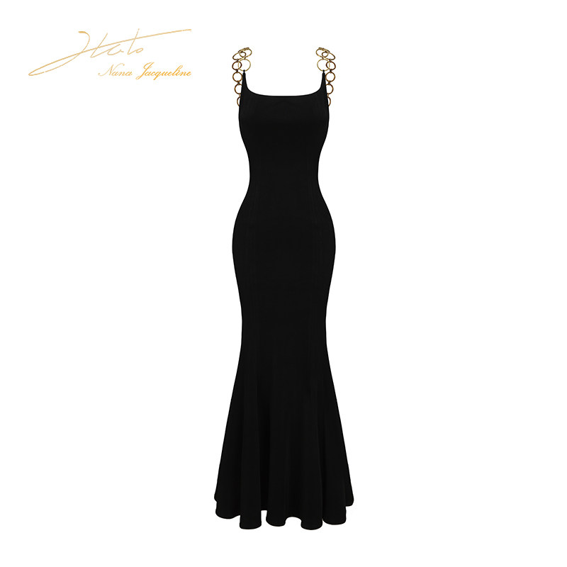📚 【胡意旋同款】NanaJacqueline渐变金属环鱼尾礼服弹力连衣裙女夏